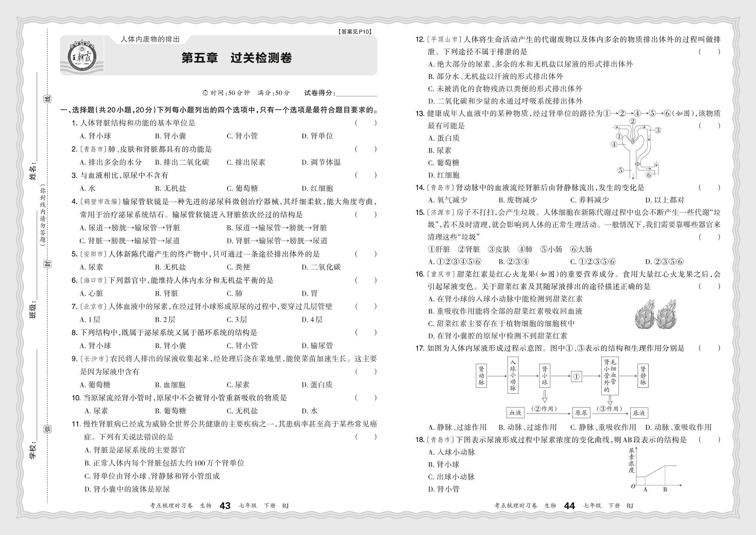 七年级生物人教版下册单元卷