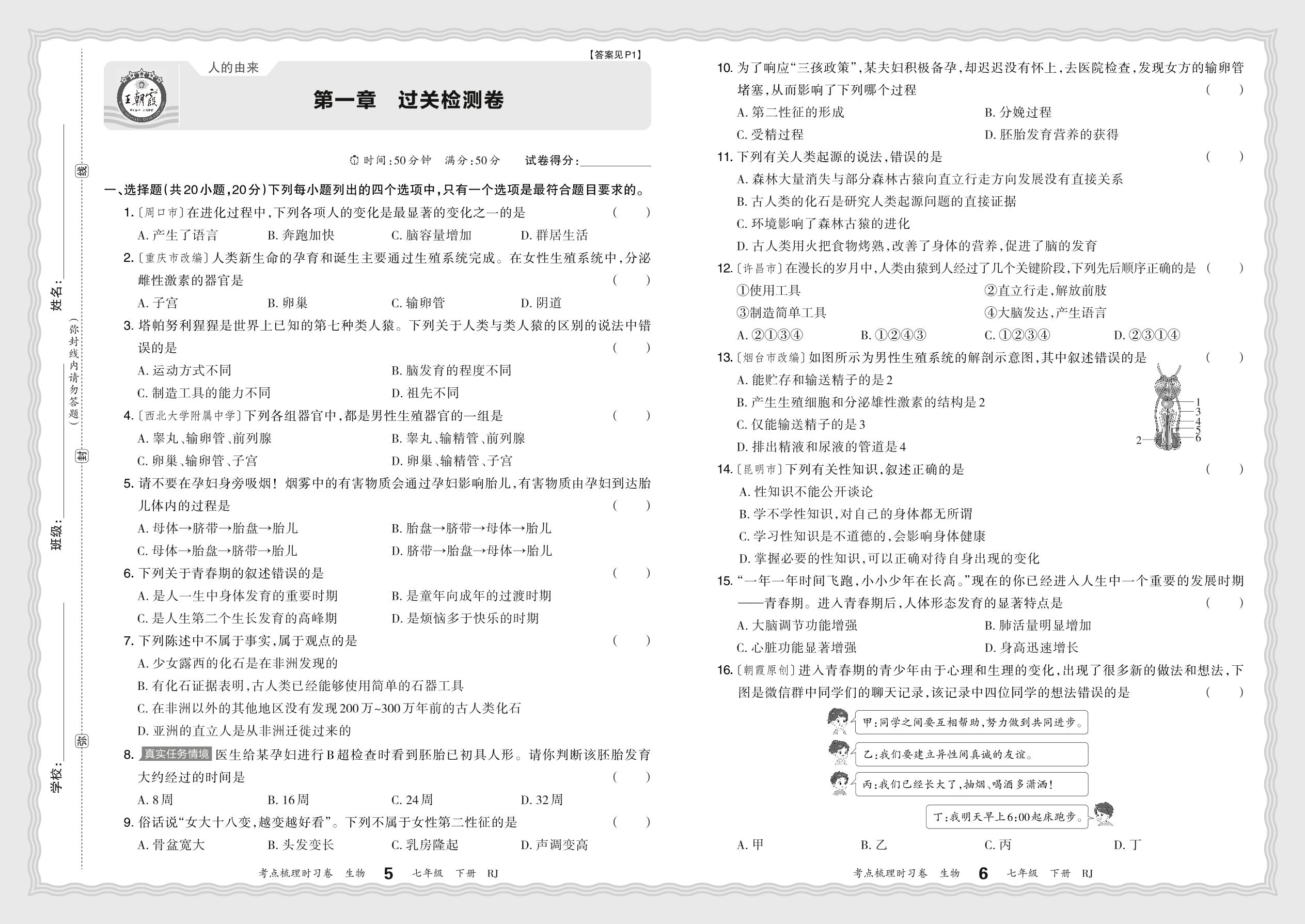 2024春下册七年级生物人教版 第一章 过关检测卷