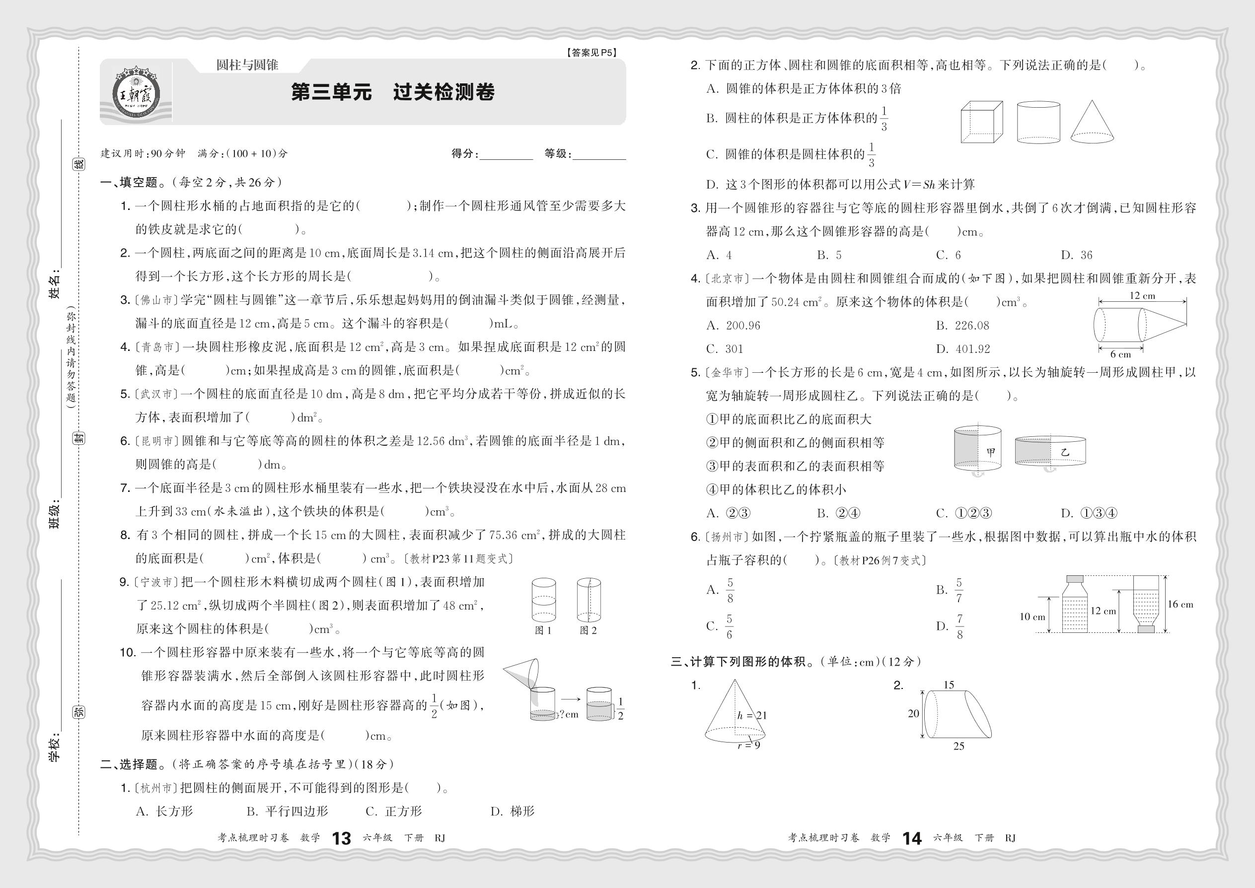 2024春下册六年级数学人教版 第三单元 过关检测卷