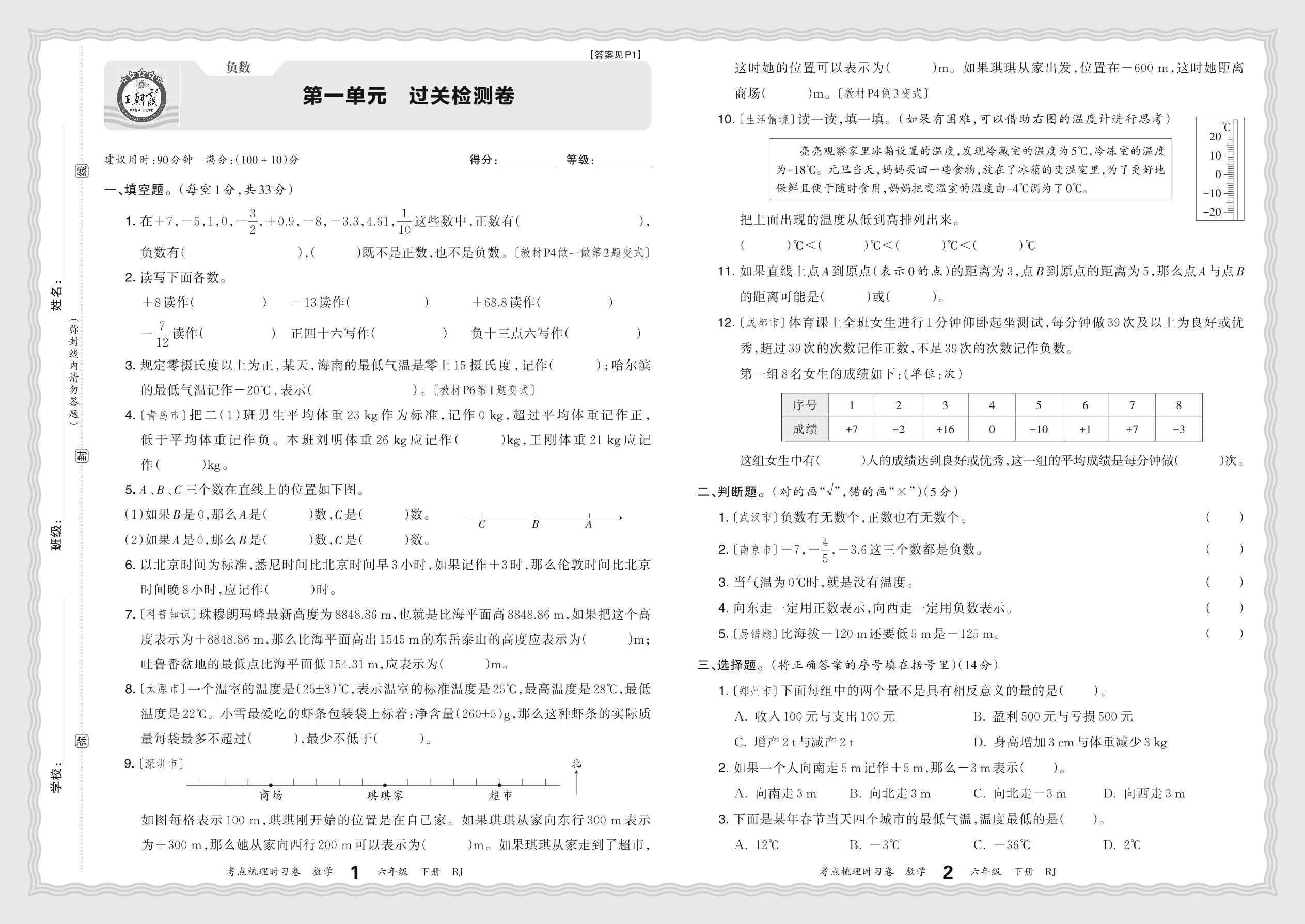 2024春下册六年级数学人教版 第一单元 过关检测卷
