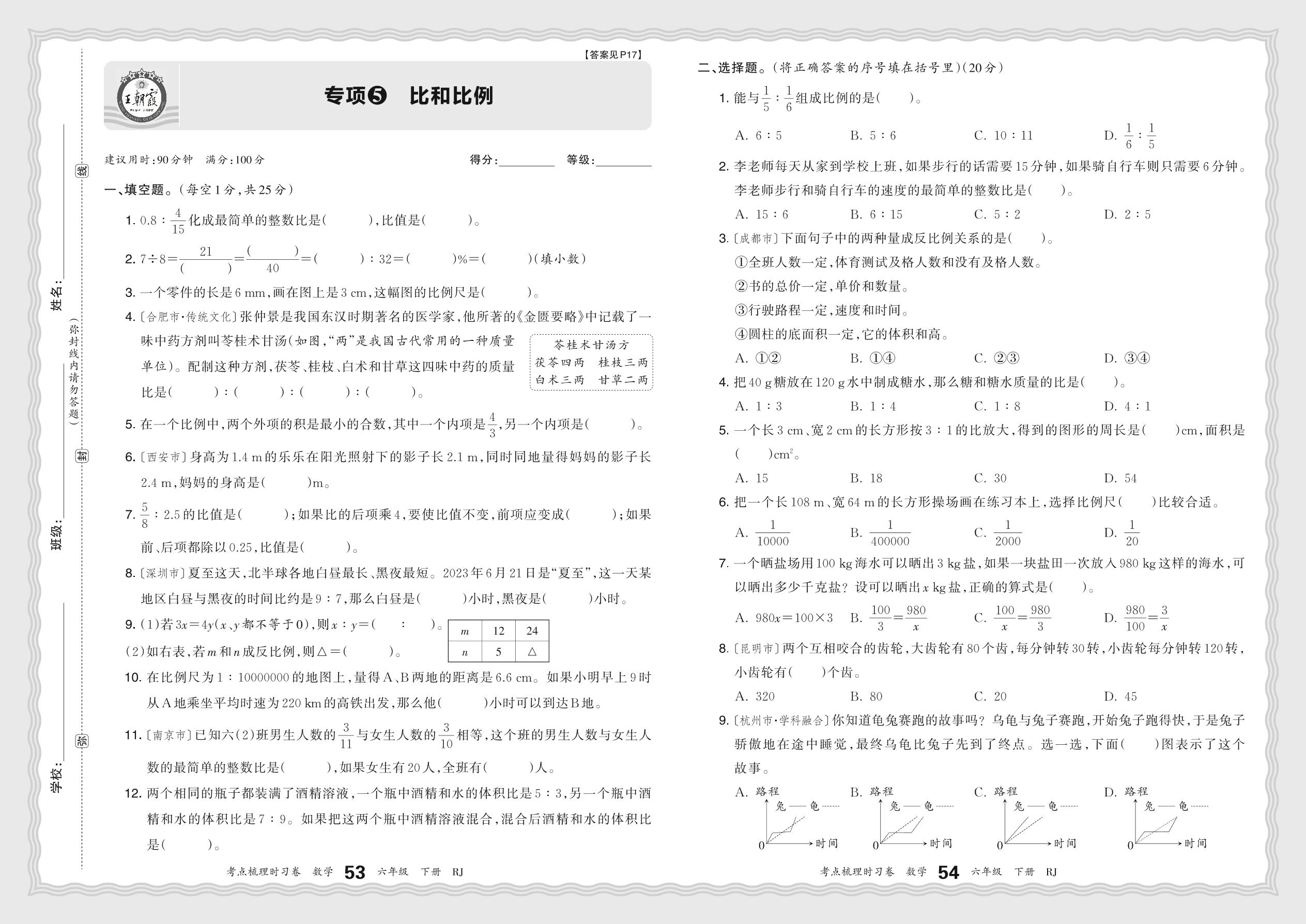 2024春下册六年级数学人教版 期末专项卷KD版·比和比例【5】