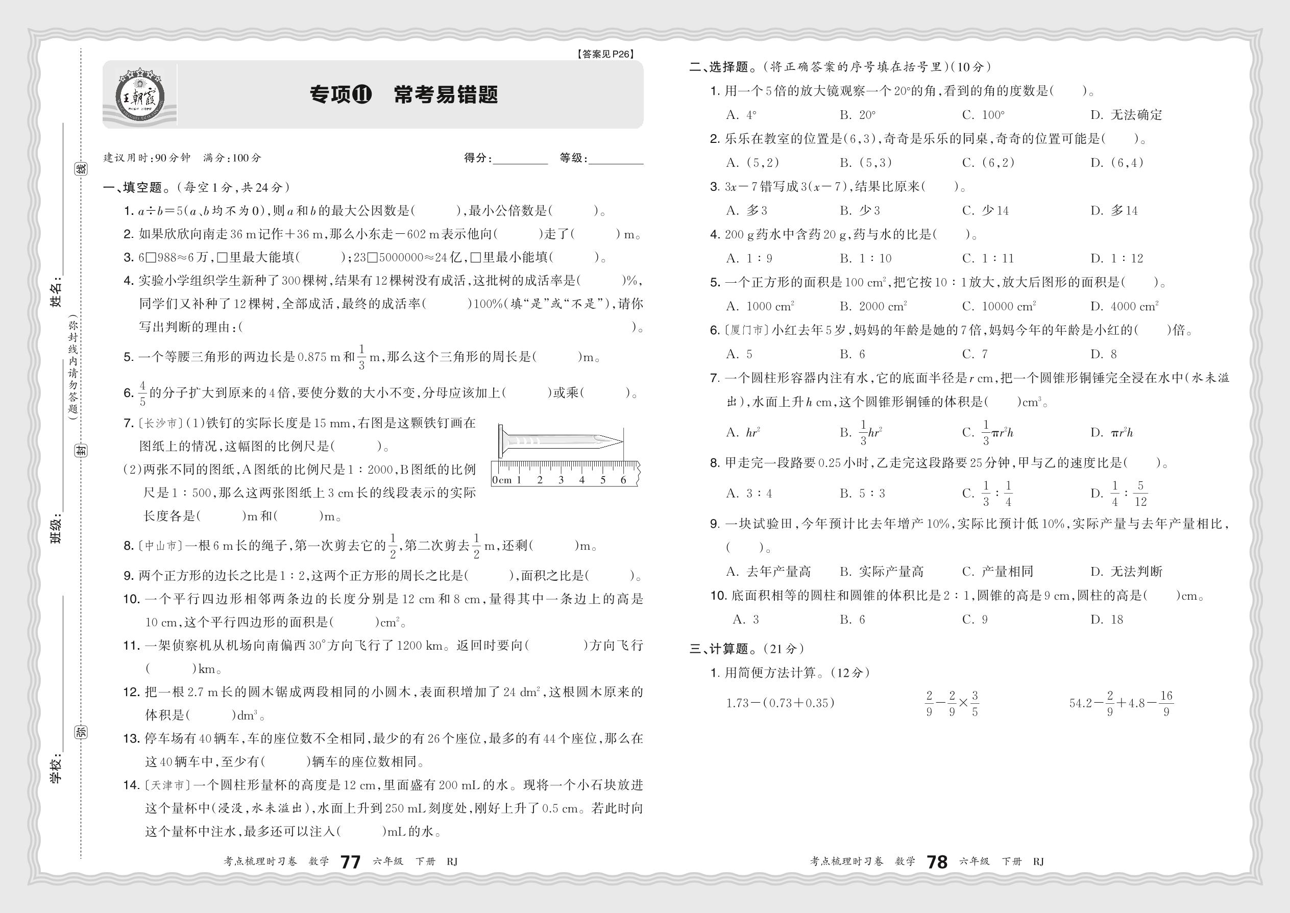2024春下册六年级数学人教版 期末专项卷KD版·常考易错題【11】