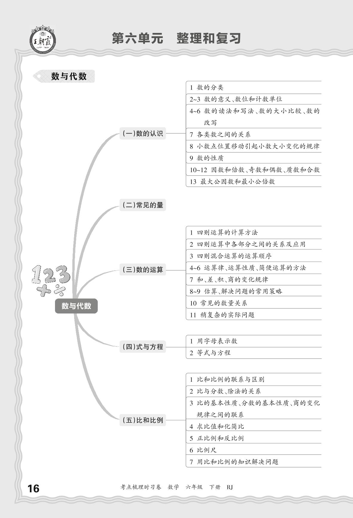2024春下册六年级数学人教版 考点梳理手册——第六单元(整理和复习) 数与代数
