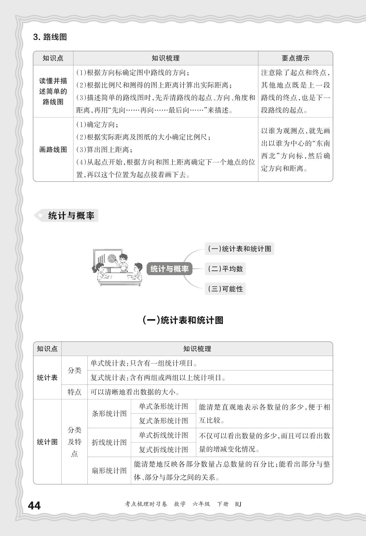 2024春下册六年级数学人教版 考点梳理手册——第六单元(整理和复习) 统计与概率