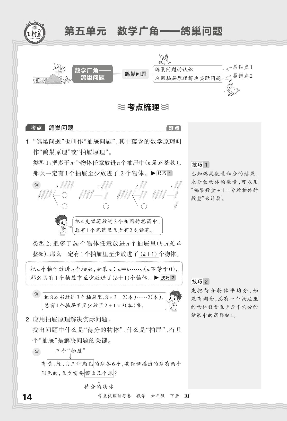 2024春下册六年级数学人教版 考点梳理手册——第五单元 数学广角 鸽巢问题
