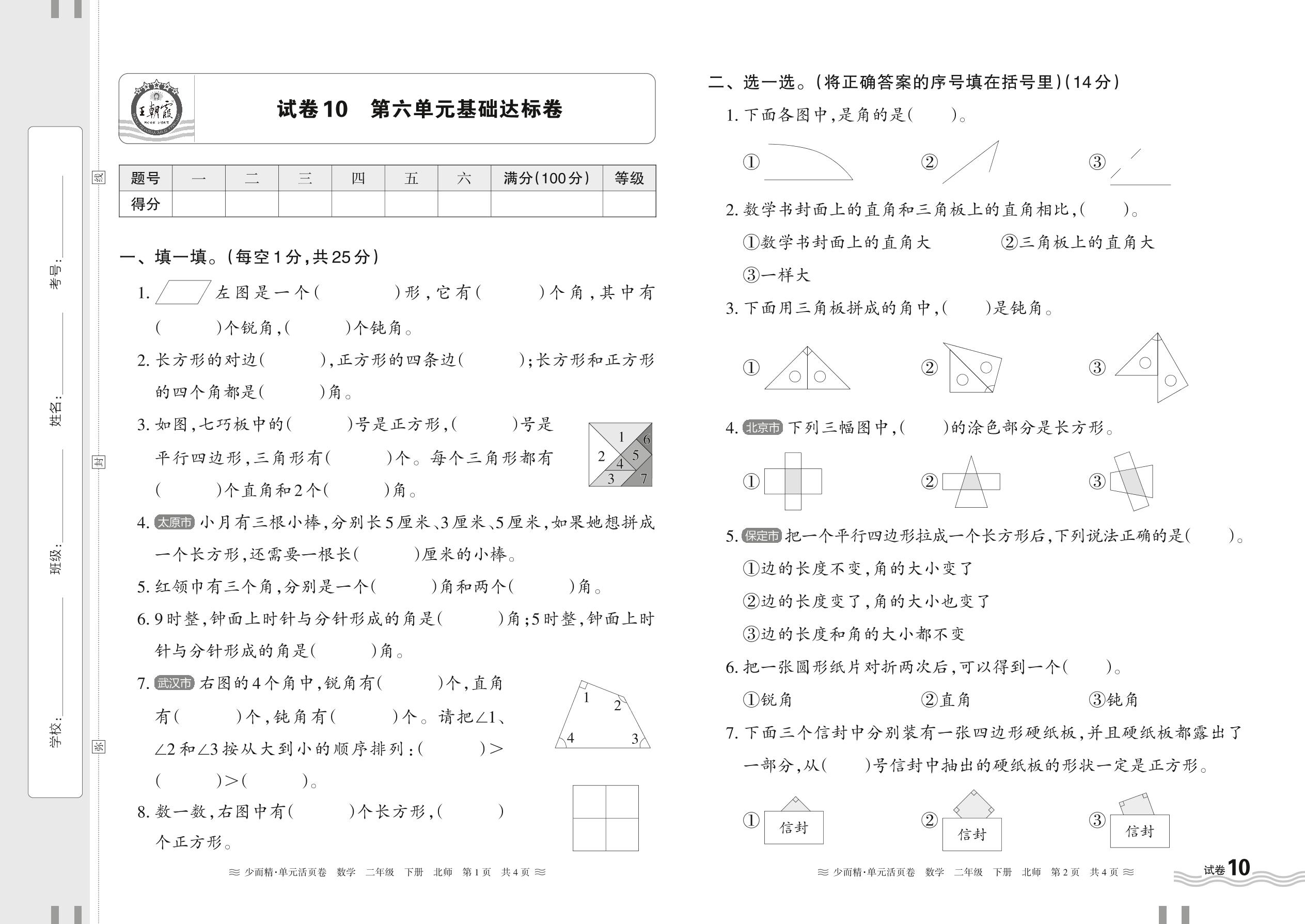2024春下册二年级数学北师版 第六单元基础达标卷【10】