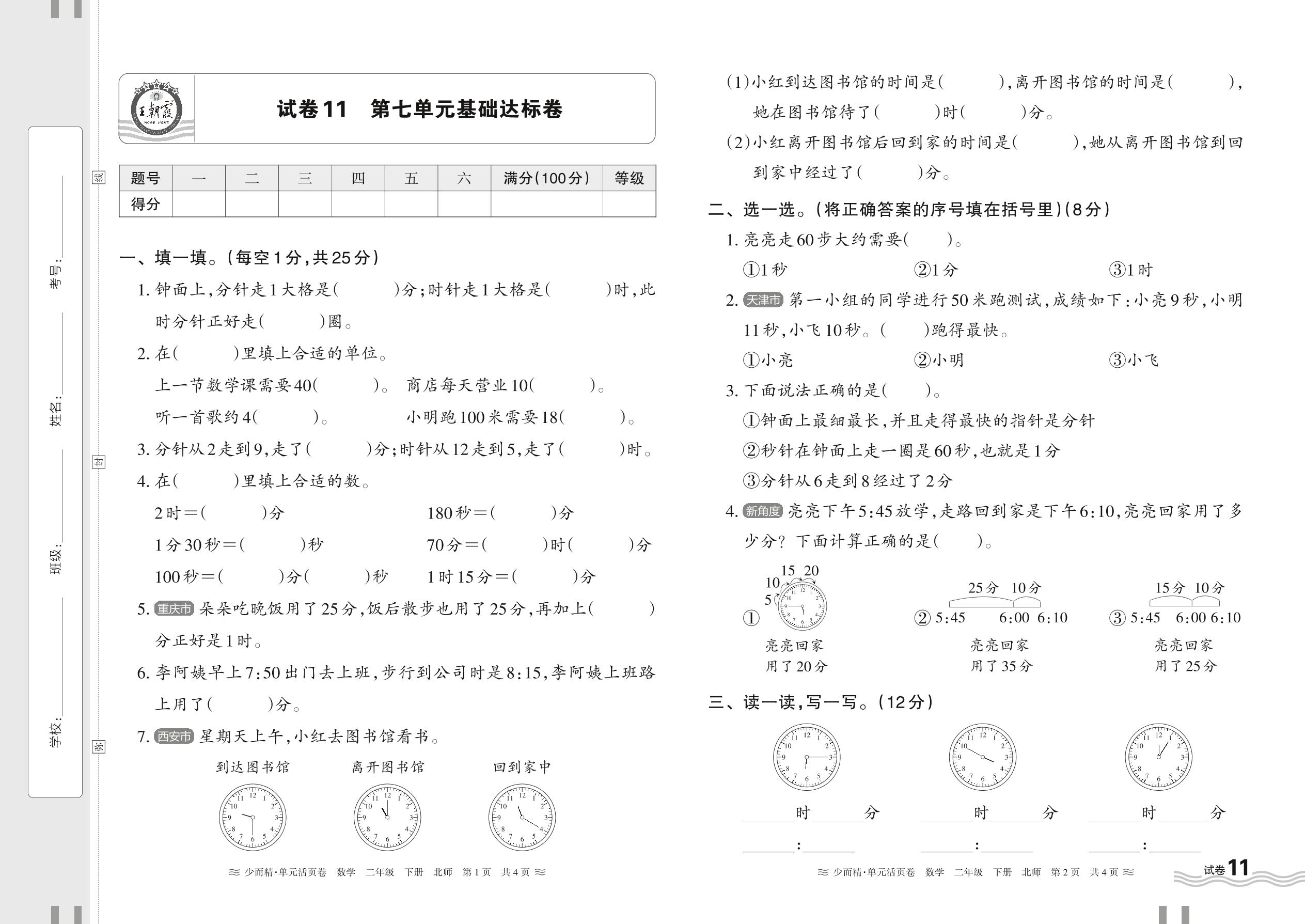 2024春下册二年级数学北师版 第七单元基础达标卷【11】