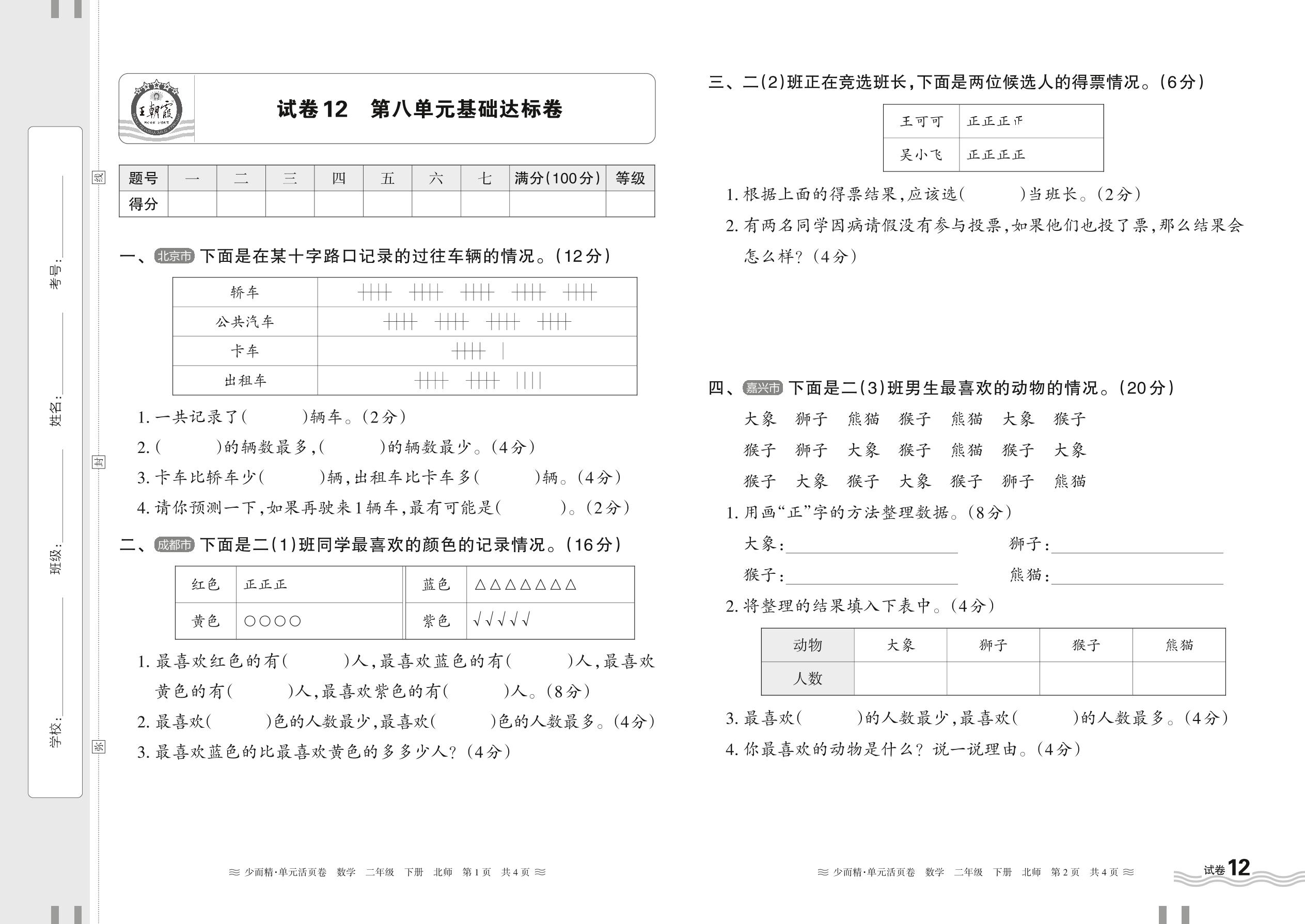 2024春下册二年级数学北师版 第八单元基础达标卷【12】