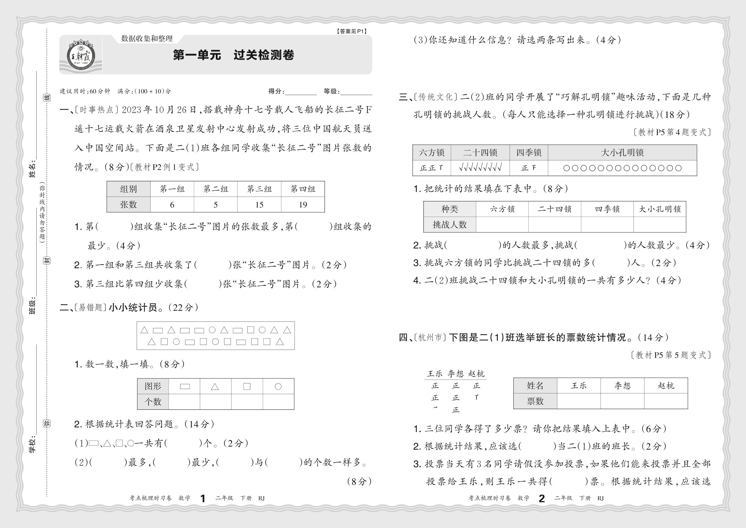 2024春下册二年级数学人教版 第一单元 过关检测卷