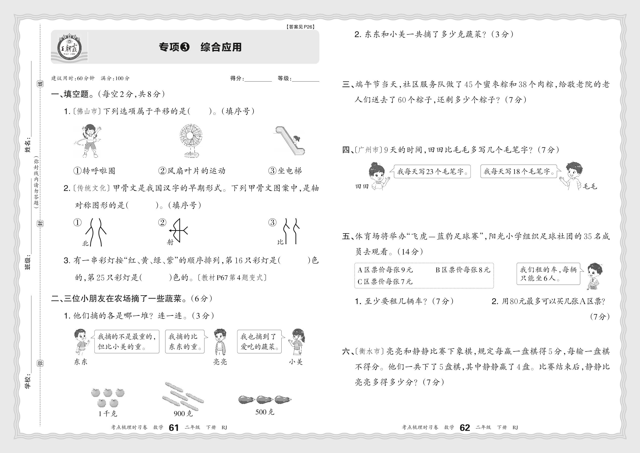 2024春下册二年级数学人教版 期末专项卷KD版·综合应用【3】