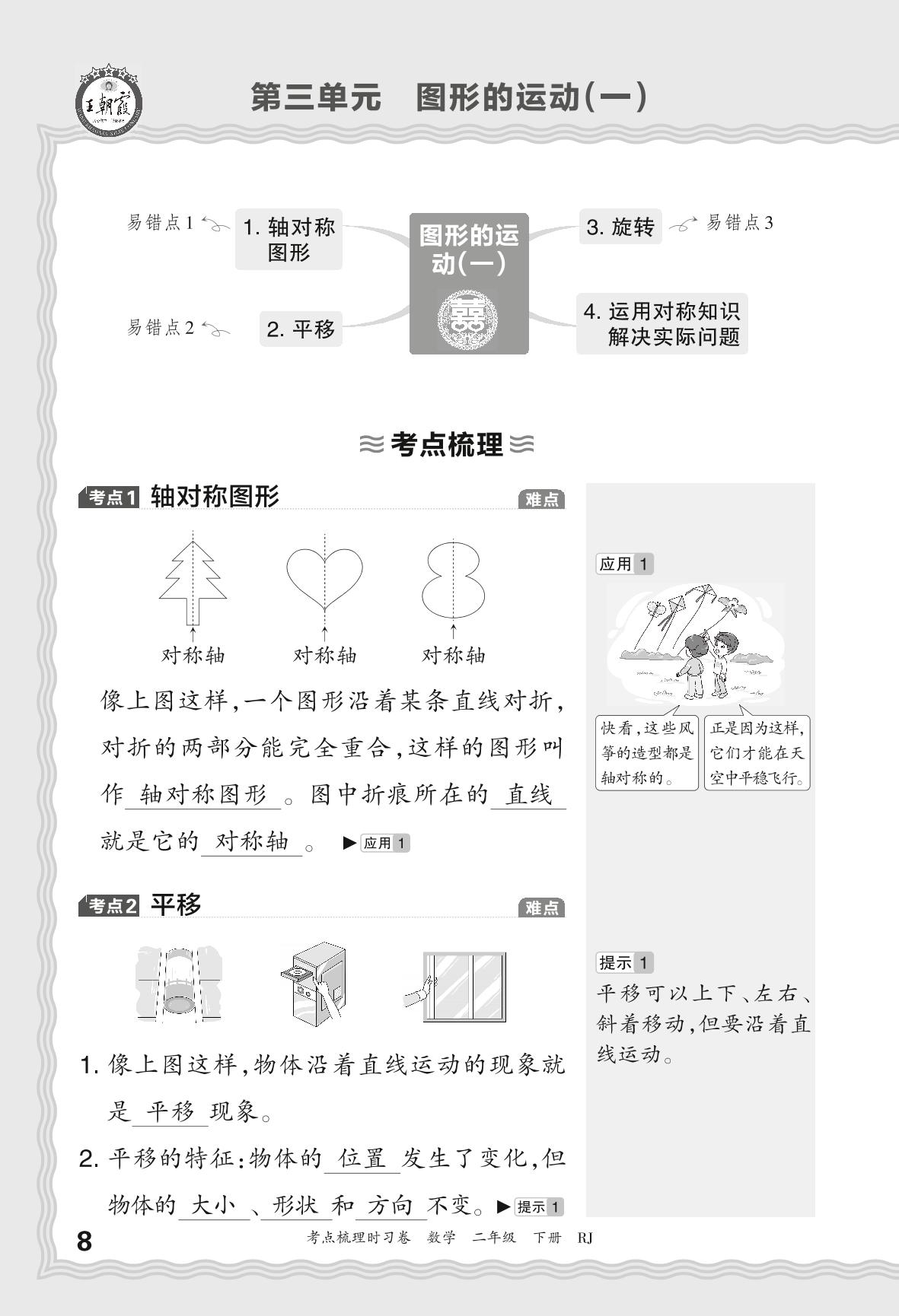 2024春下册二年级数学人教版 考点梳理手册——第三单元 图形的运动(一)