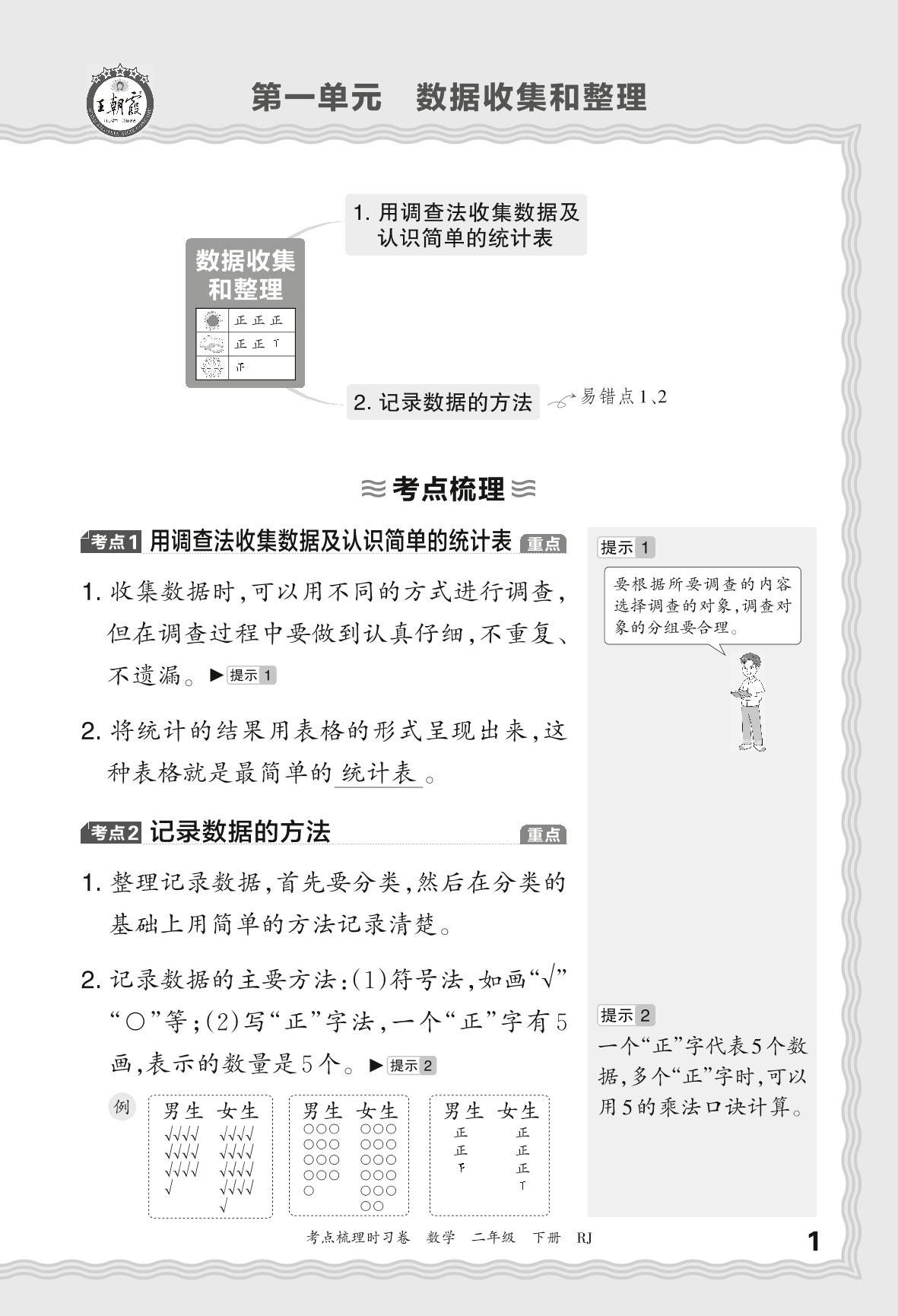 2024春下册二年级数学人教版 考点梳理手册——第一单元 数据收集和整理
