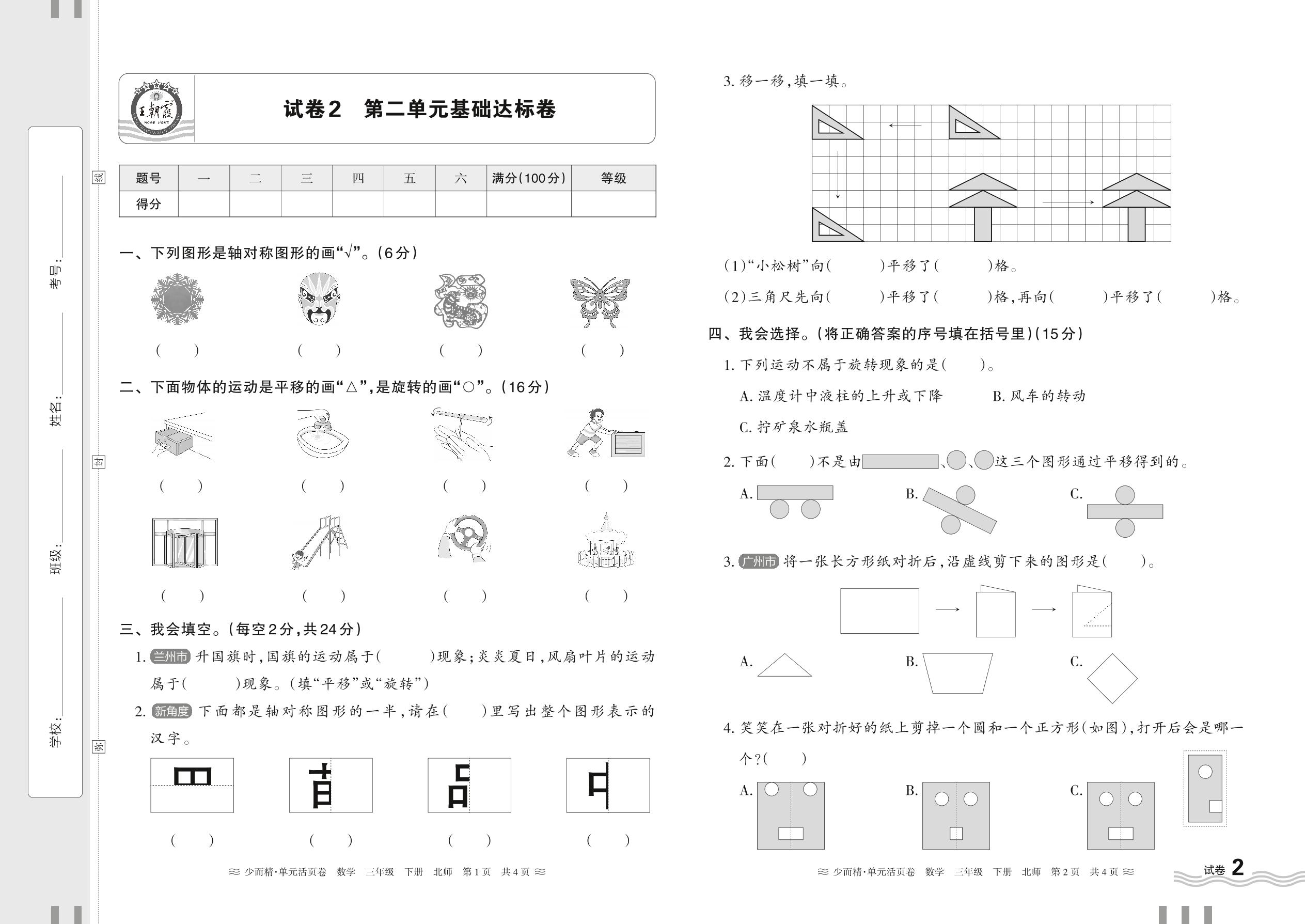 2024春下册三年级数学北师版 第二单元基础达标卷【2】