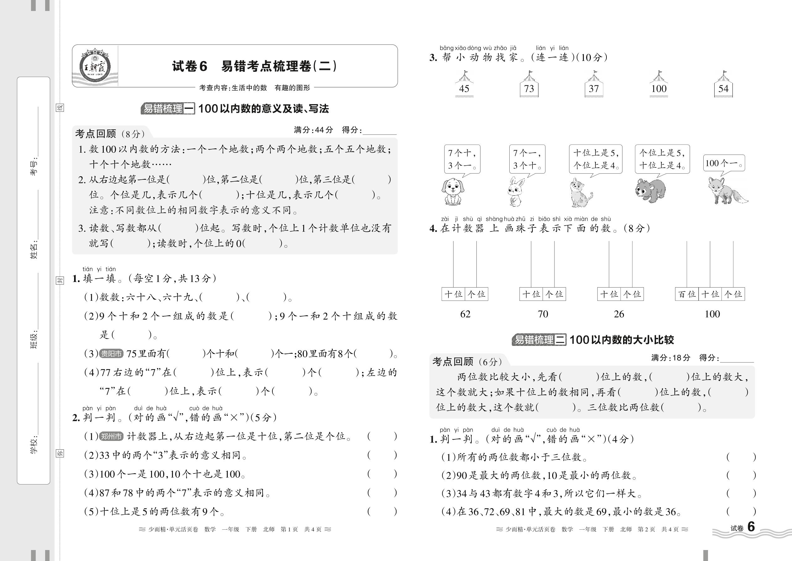 2024春下册一年级数学北师版 易错考点梳理卷——生活中的数 有趣的图形【6】