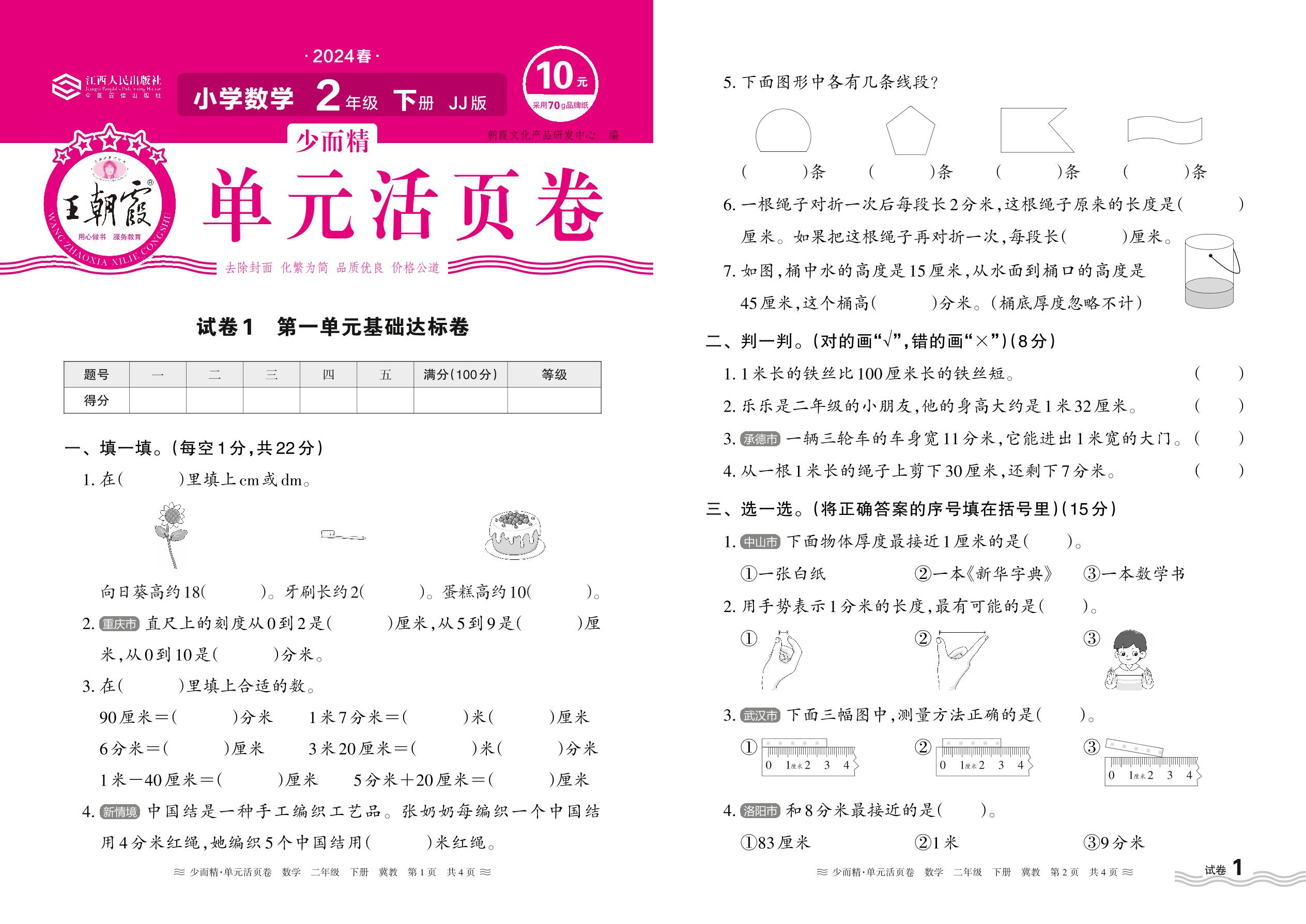 2024春下册二年级数学冀教版 第一单元基础达标卷【1】