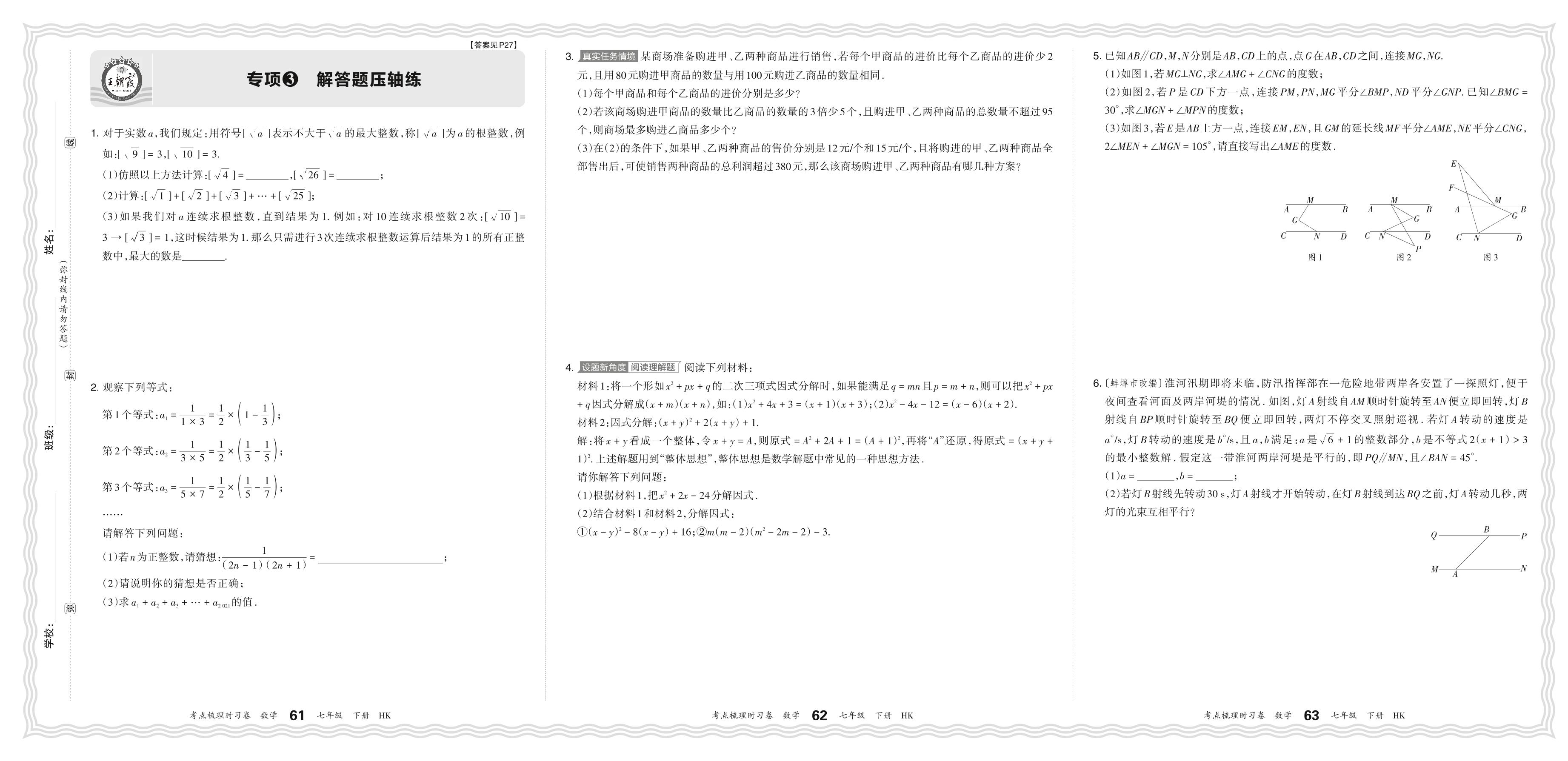 2024春下册七年级数学沪科版 期末专项卷KD版·解答题压轴练【3】