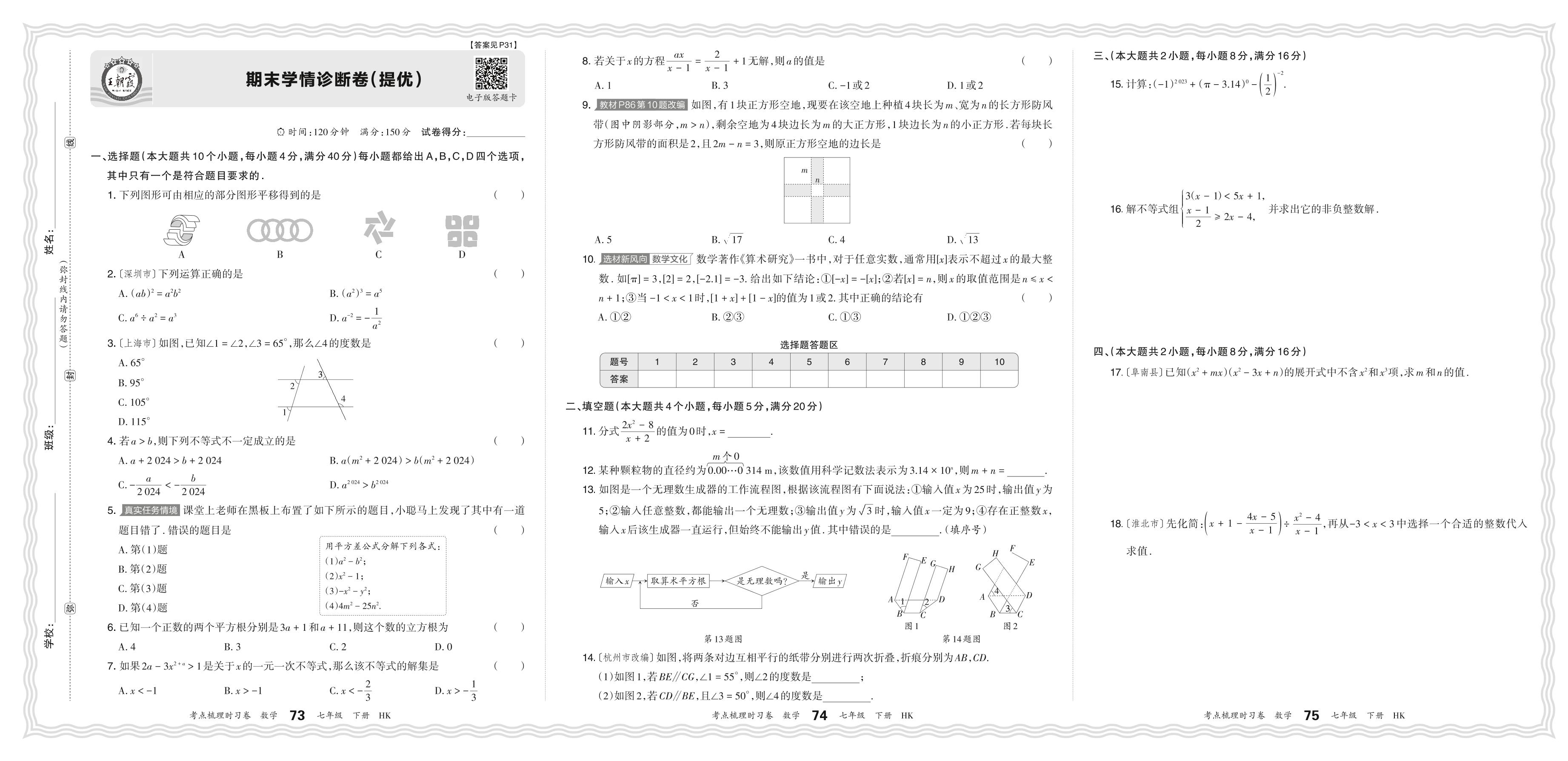 2024春下册七年级数学沪科版 期末学情诊断卷(提优)
