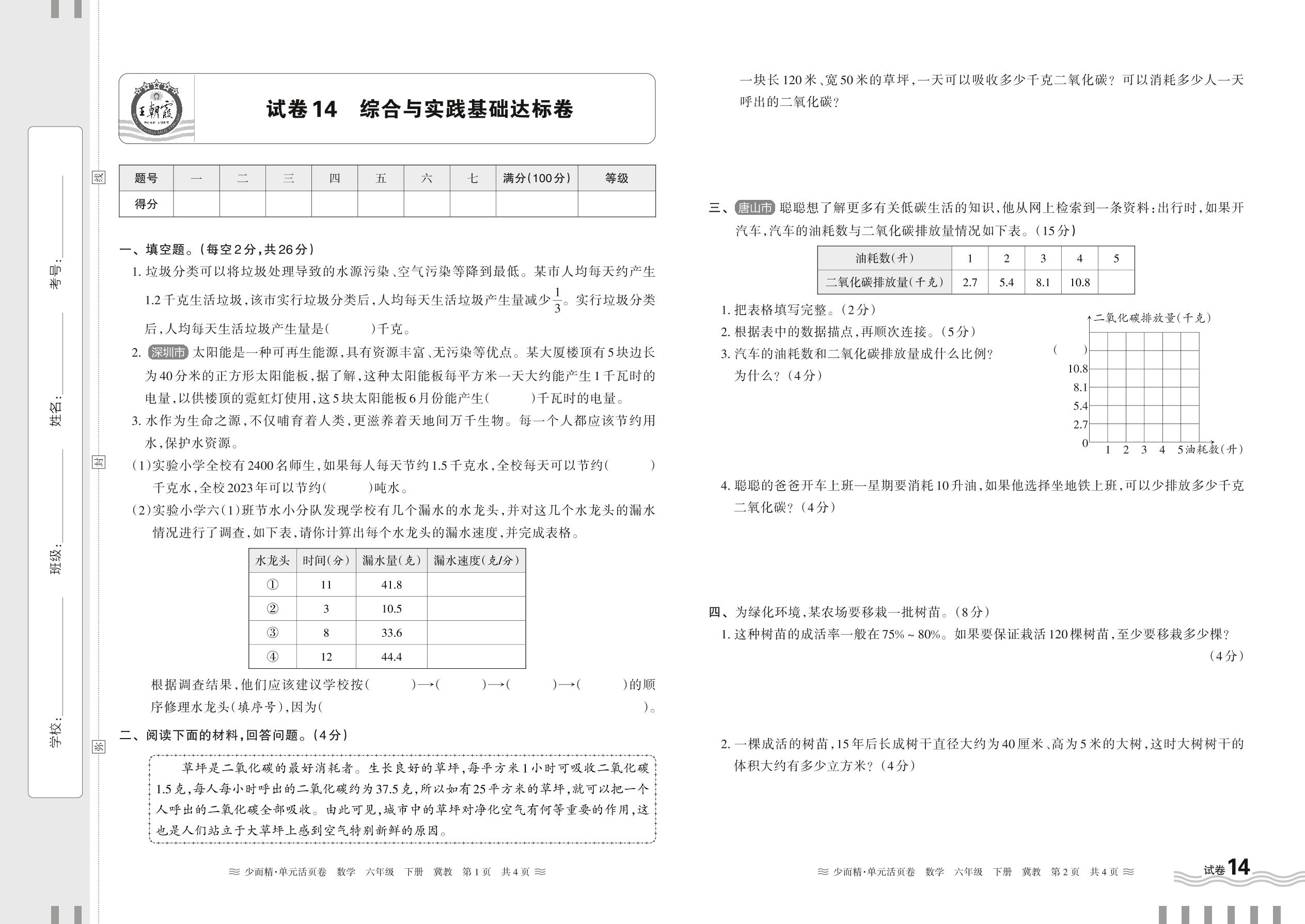 2024春下册六年级数学冀教版 综合与实践基础达标卷【14】