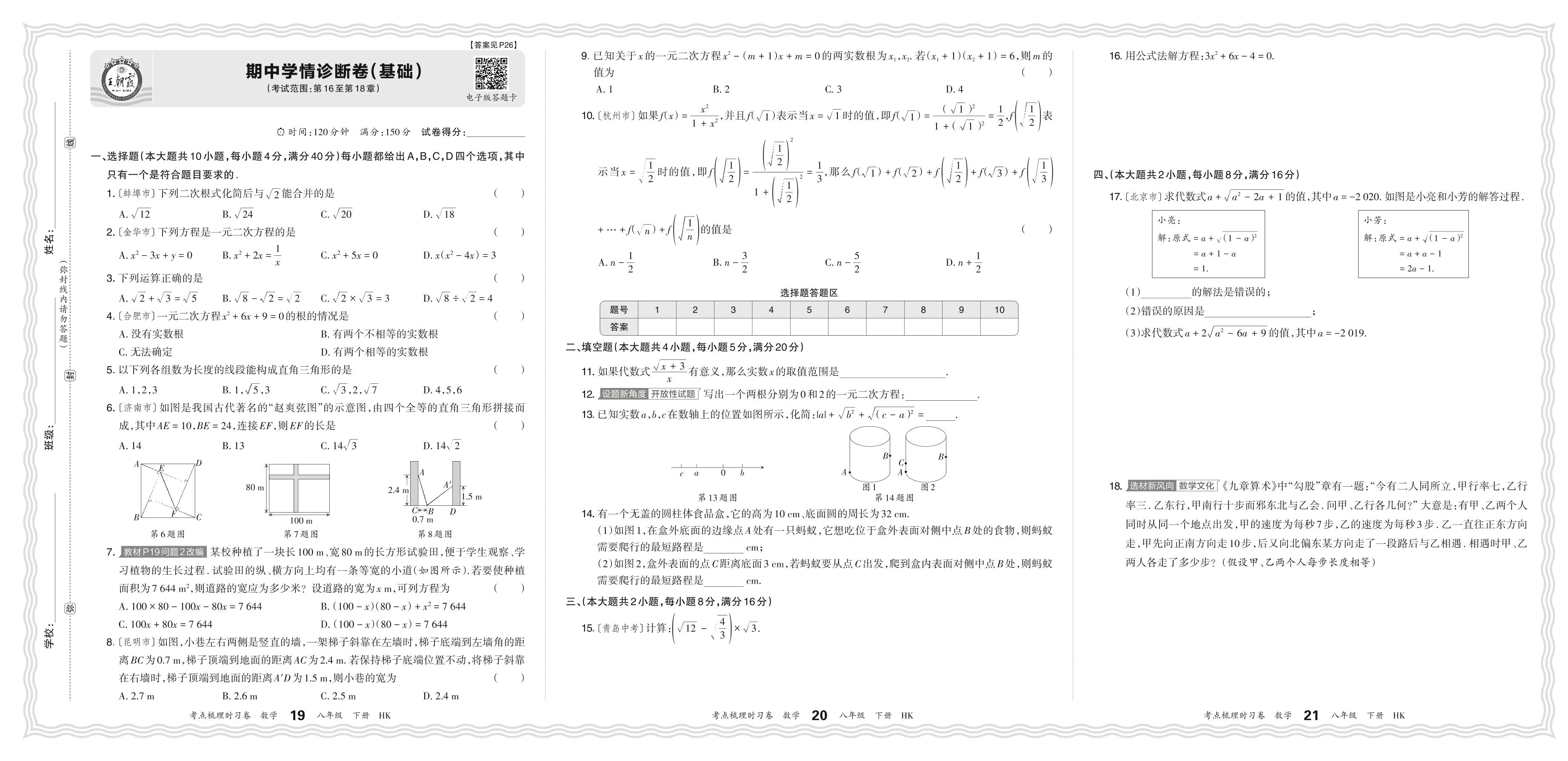 八年级数学沪科版下册期中卷
