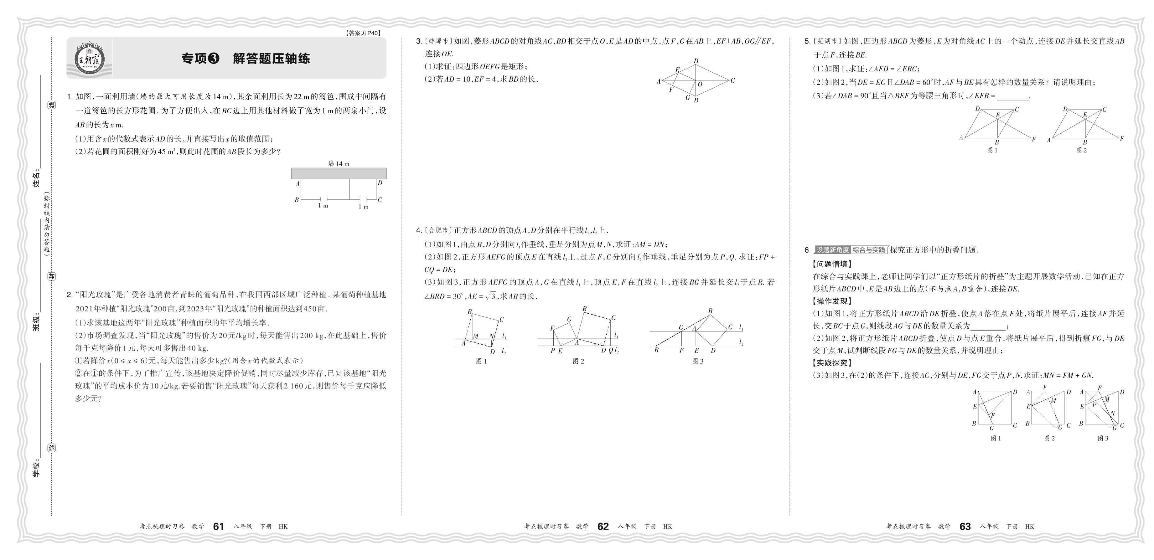 2024春下册八年级数学沪科版 期末专项卷KD版·解答题压轴练【3】