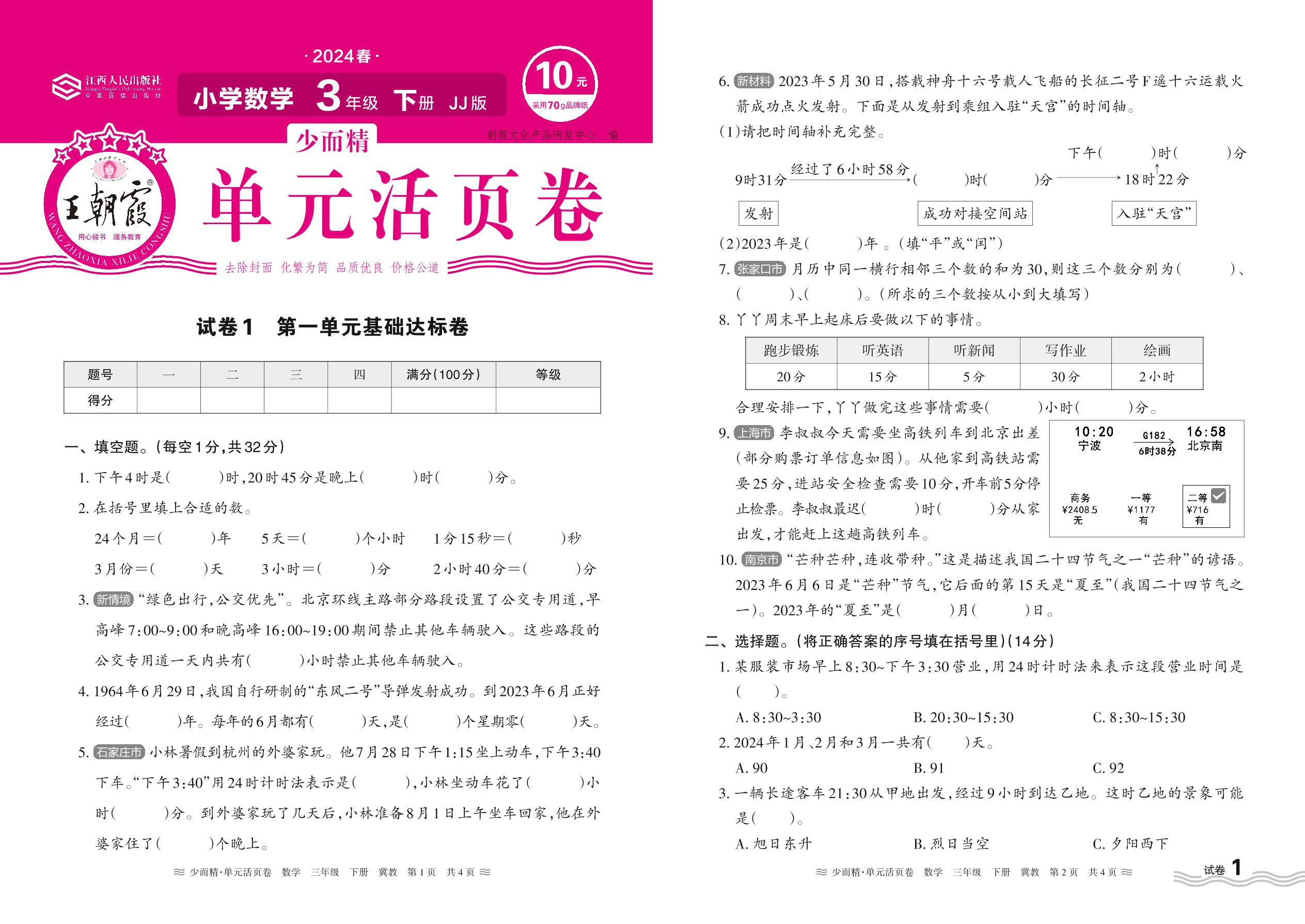 2024春下册三年级数学冀教版 第一单元基础达标卷【1】