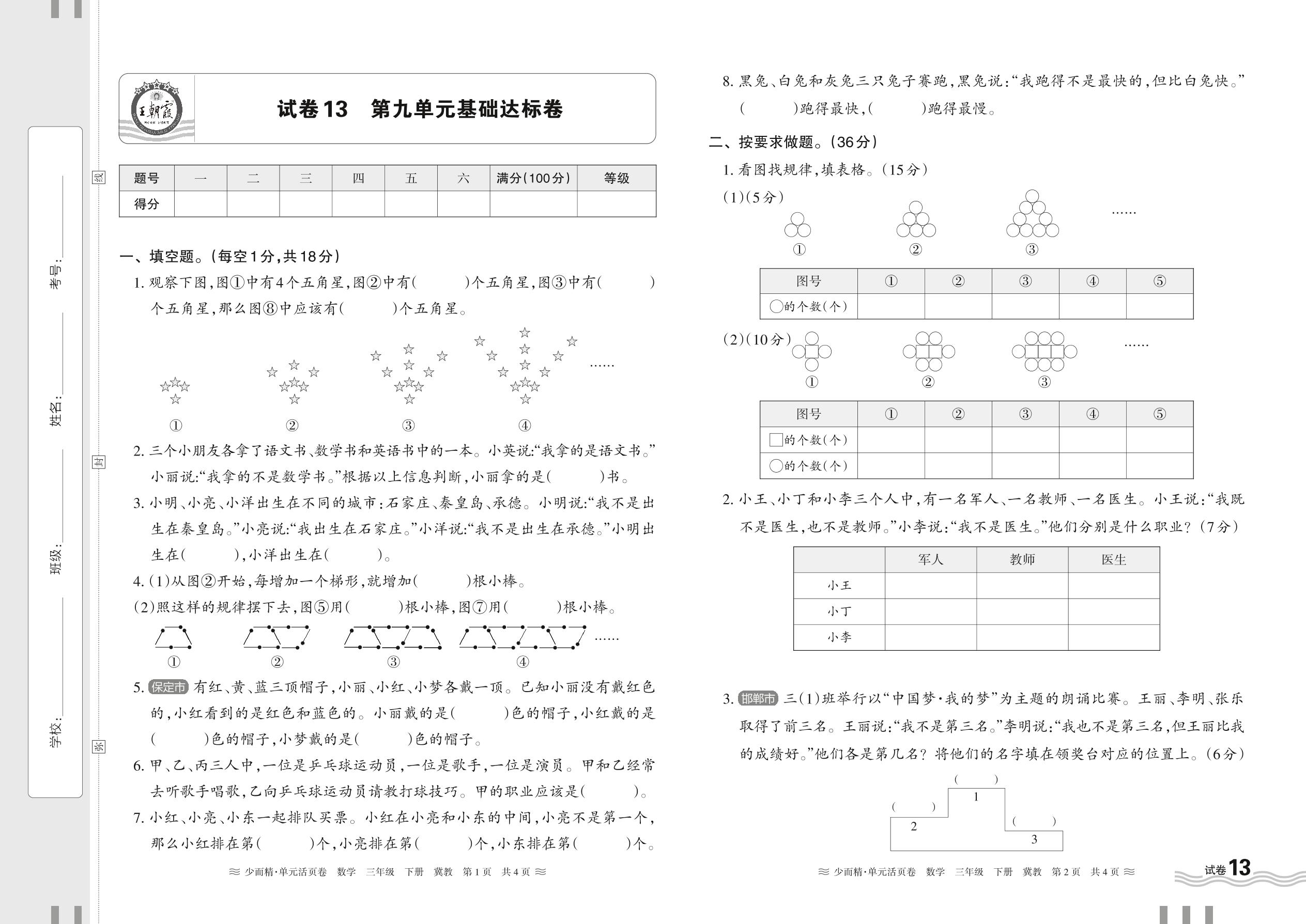 2024春下册三年级数学冀教版 第九单元基础达标卷【13】