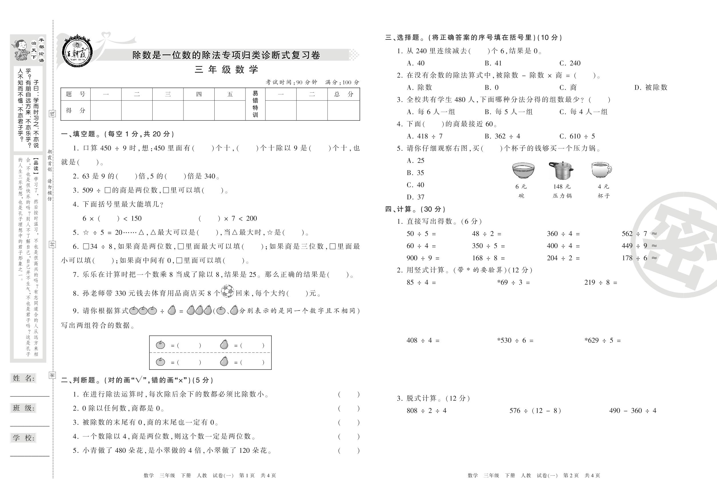 王朝霞期末专项卷三年级下册数学(人教版)_R210804103832【1】