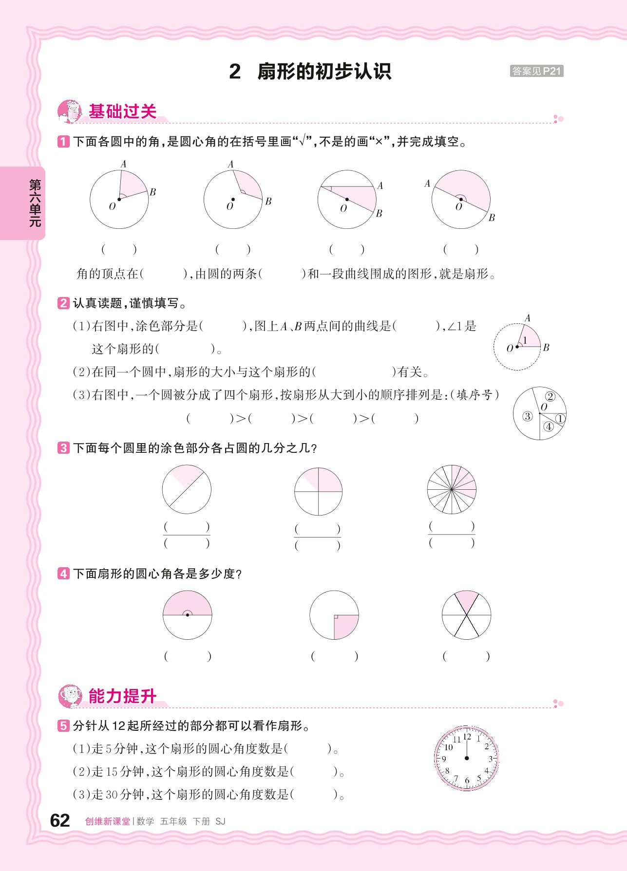 2024春下册五年级数学苏教版 第六单元 圆——2. 扇形的初步认识_R240123160345189