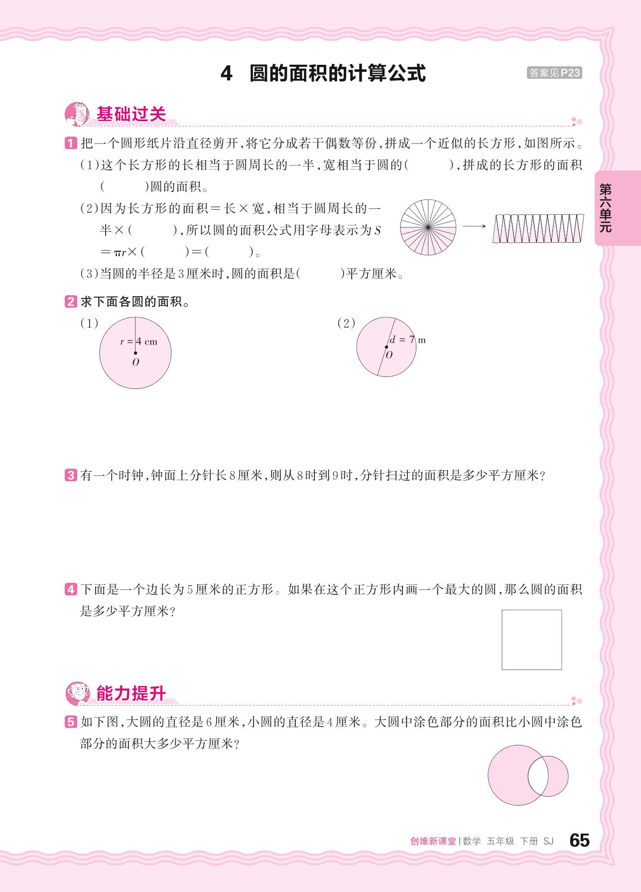 2024春下册五年级数学苏教版 第六单元 圆——4. 圆的面积的计算公式
