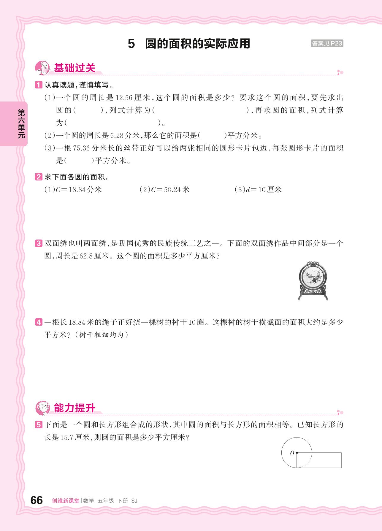 2024春下册五年级数学苏教版 第六单元 圆——5. 圆的面积的实际应用