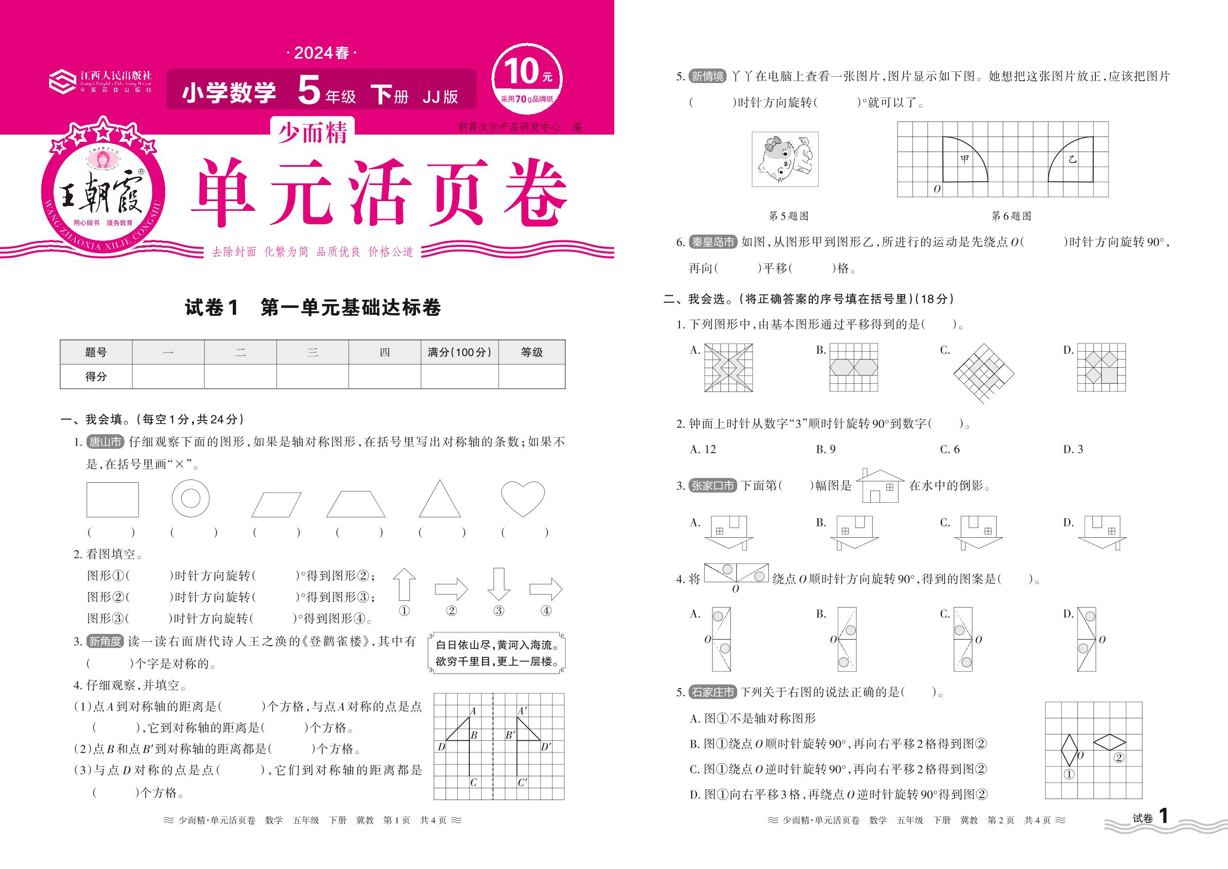 2024春下册五年级数学冀教版 第一单元基础达标卷【1】