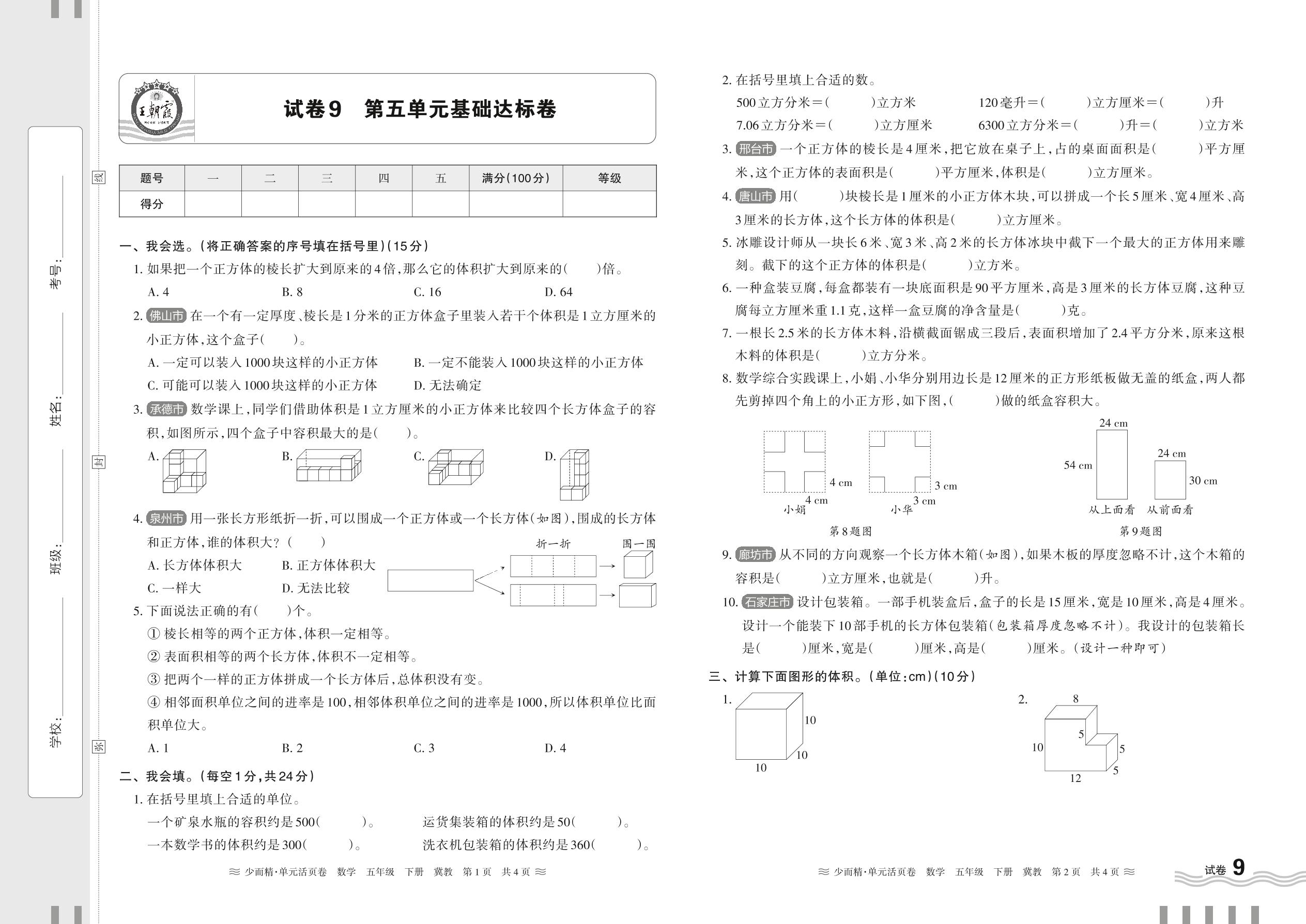 2024春下册五年级数学冀教版 第五单元基础达标卷【9】