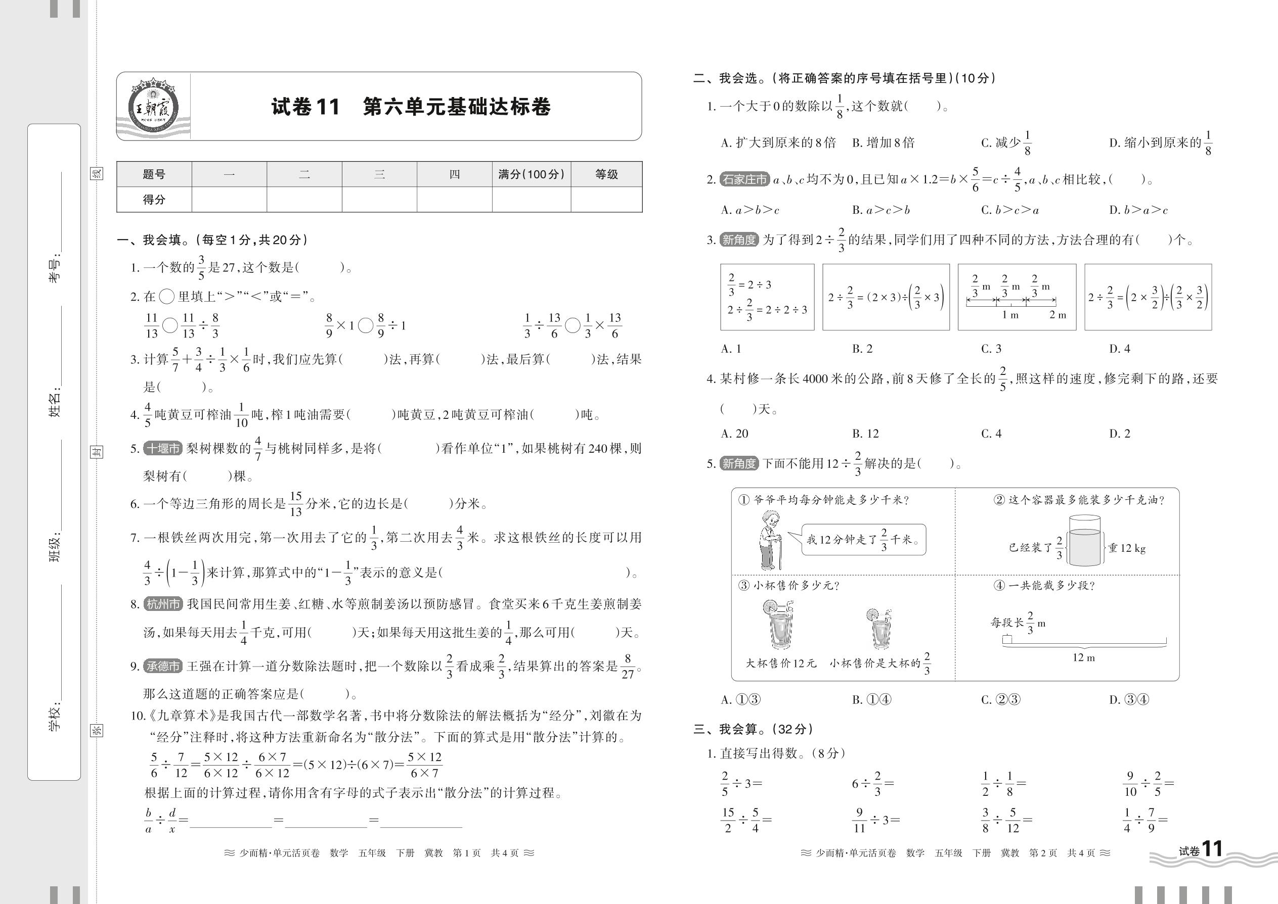 2024春下册五年级数学冀教版 第六单元基础达标卷【11】