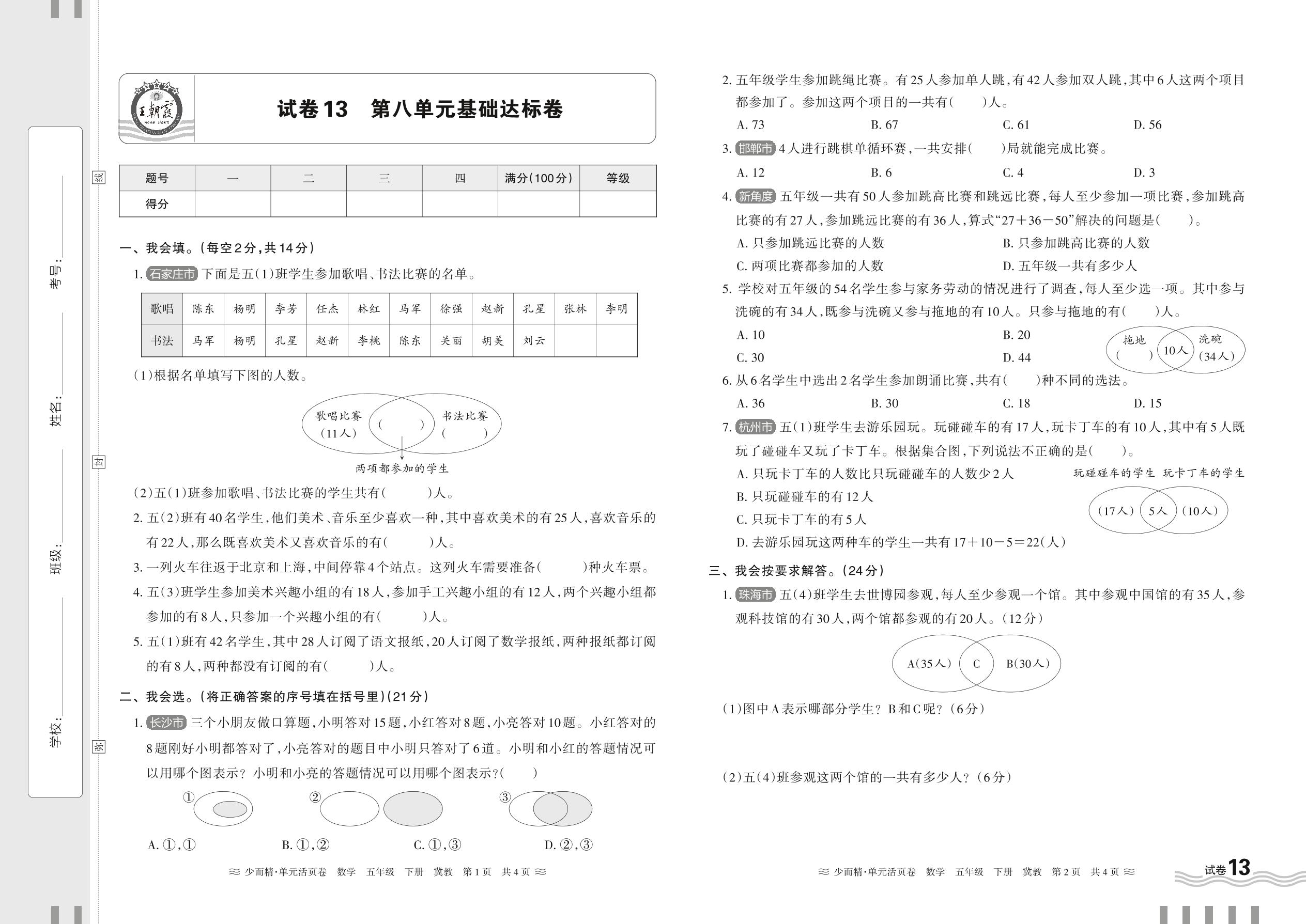 2024春下册五年级数学冀教版 第八单元基础达标卷【13】