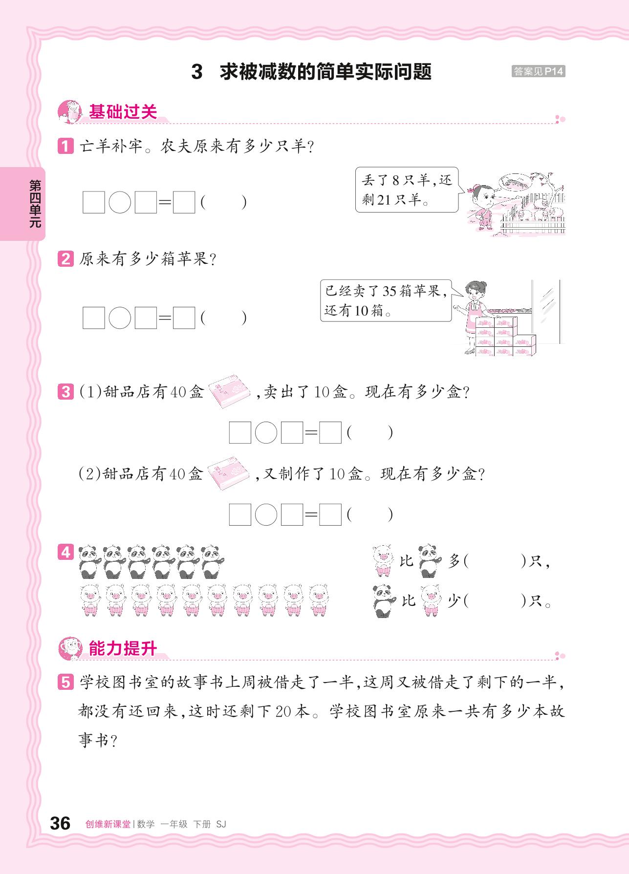 2024春下册一年级数学苏教版 第四单元 100以内的加法和减法(一)——3. 求被减数的简单实际问题