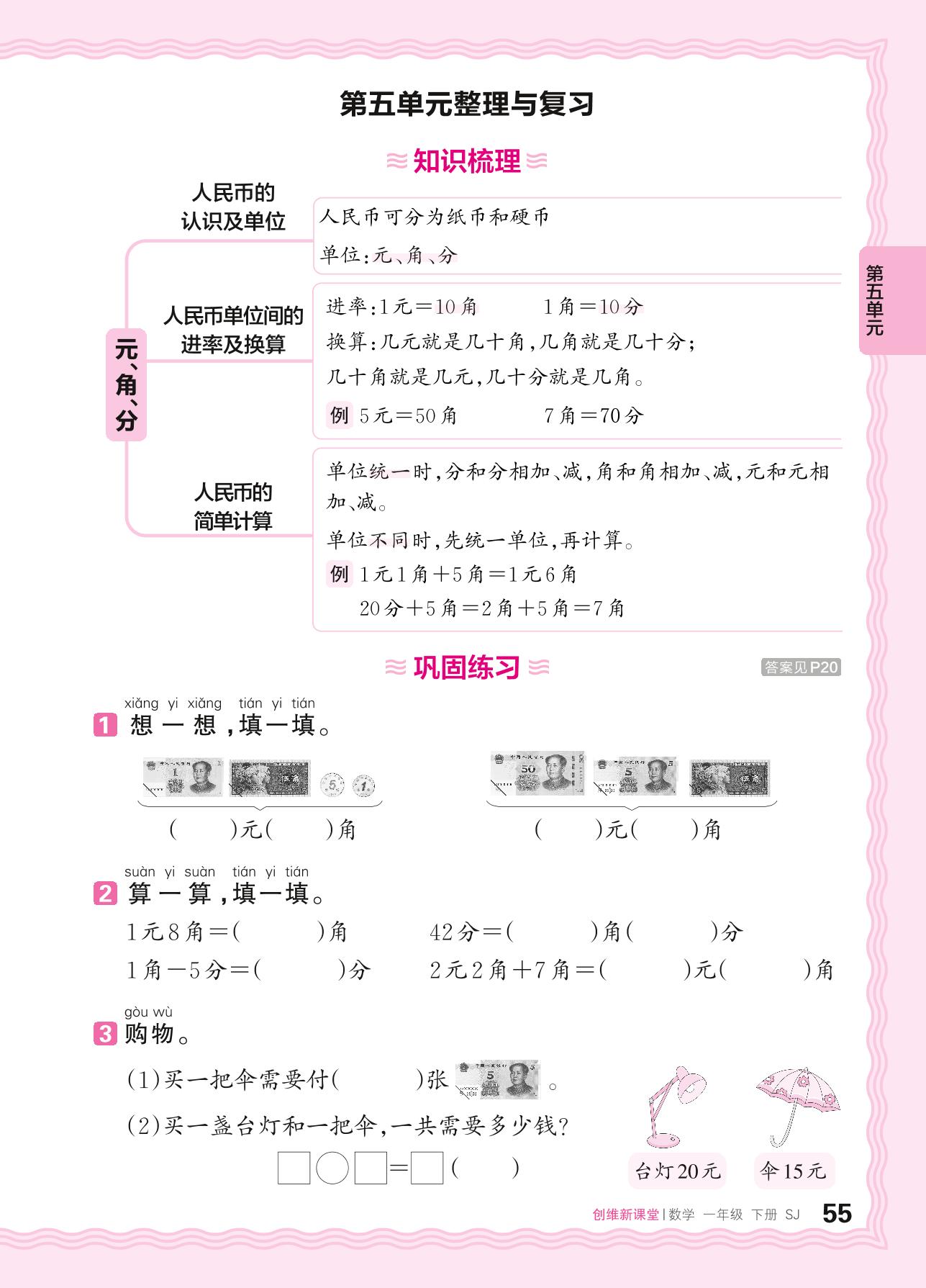 2024春下册一年级数学苏教版 第五单元整理与复习