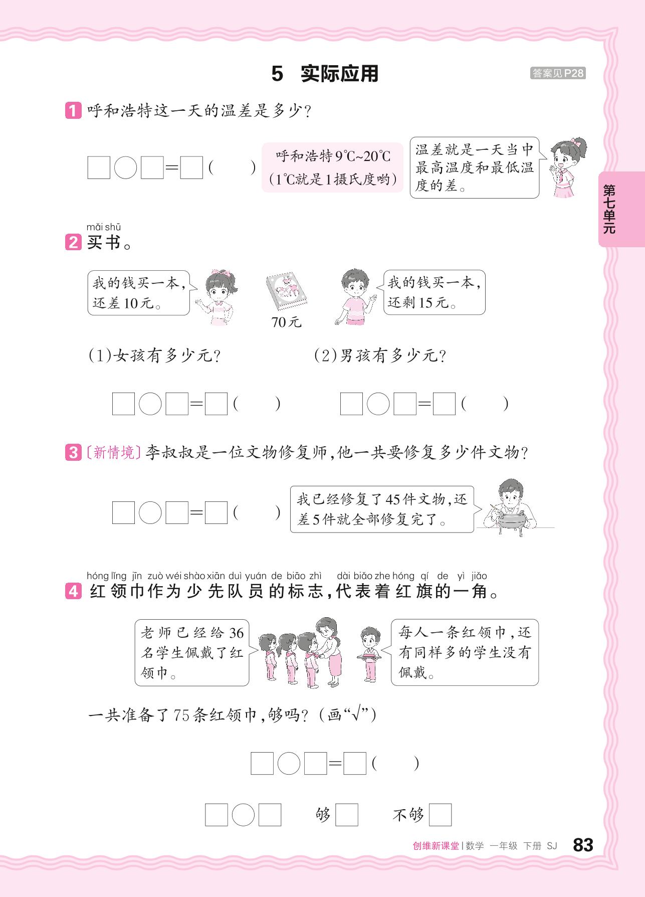 2024春下册一年级数学苏教版 第七单元 期末复习——5. 实际应用