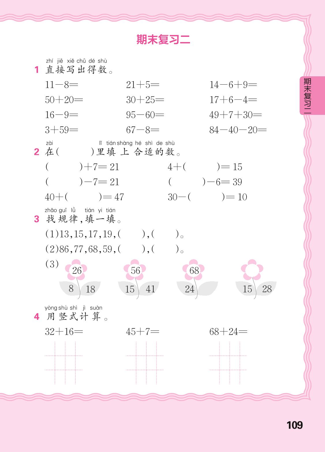 2024春下册一年级数学苏教版 期末复习二(计算专练)
