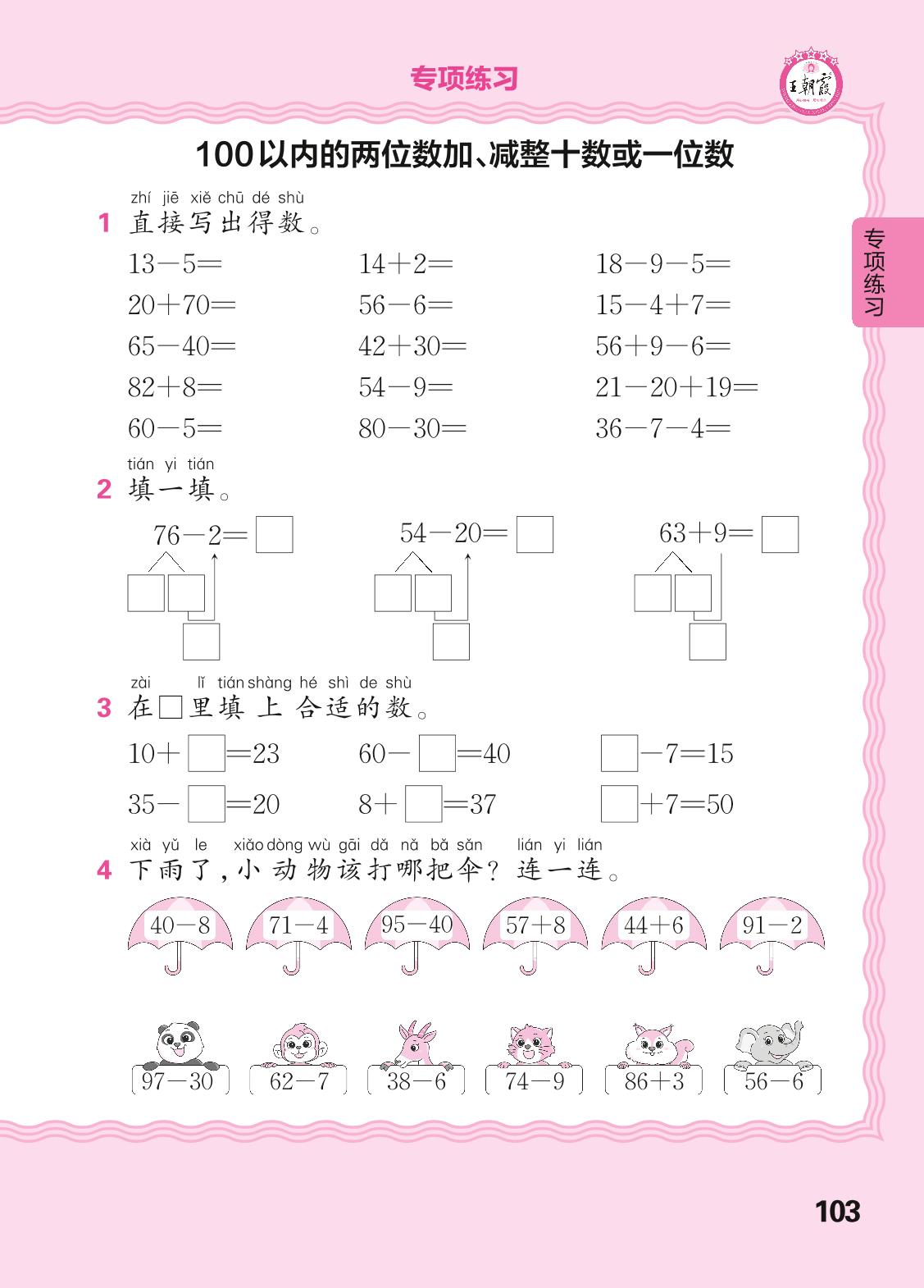 一年级数学苏教版下册专项卷