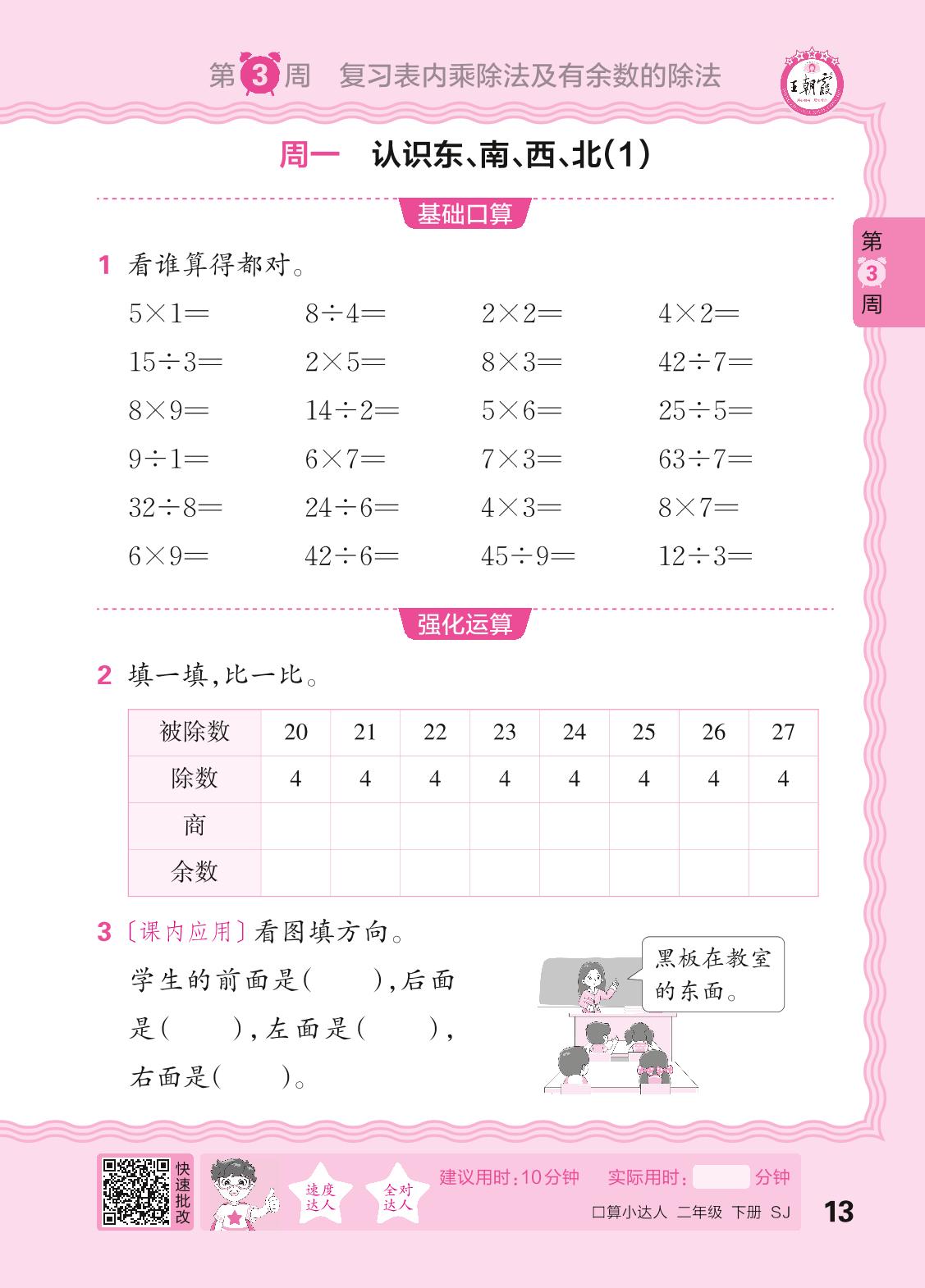 2024春下册二年级数学苏教版 口算计算专练 第3周