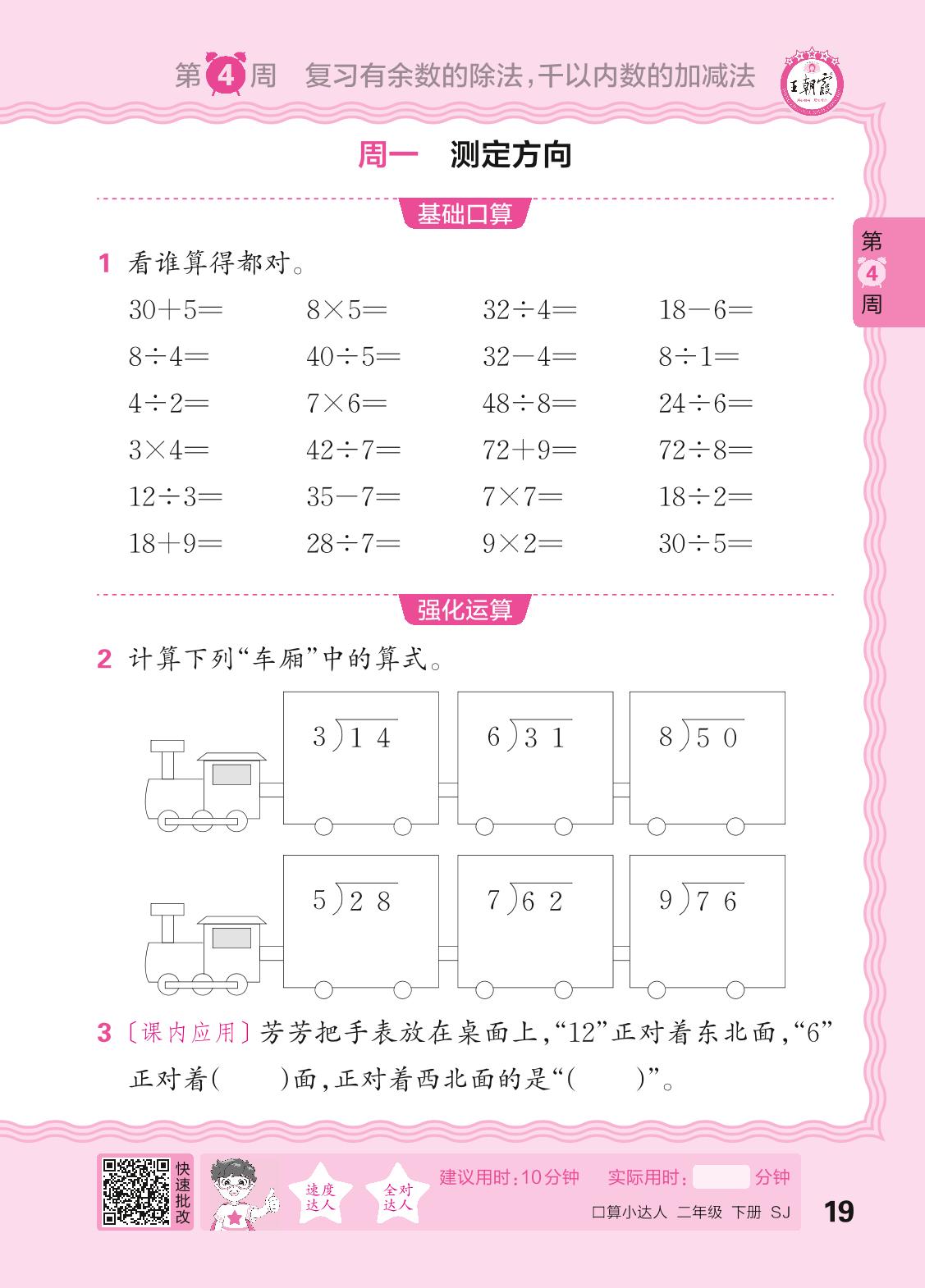 2024春下册二年级数学苏教版 口算计算专练 第4周