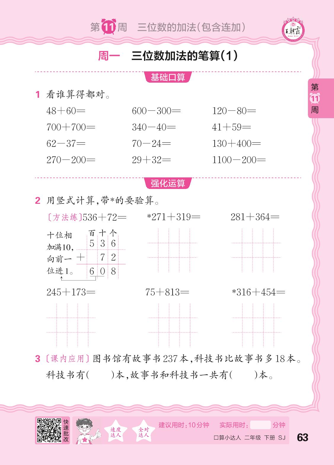 2024春下册二年级数学苏教版 口算计算专练 第11周