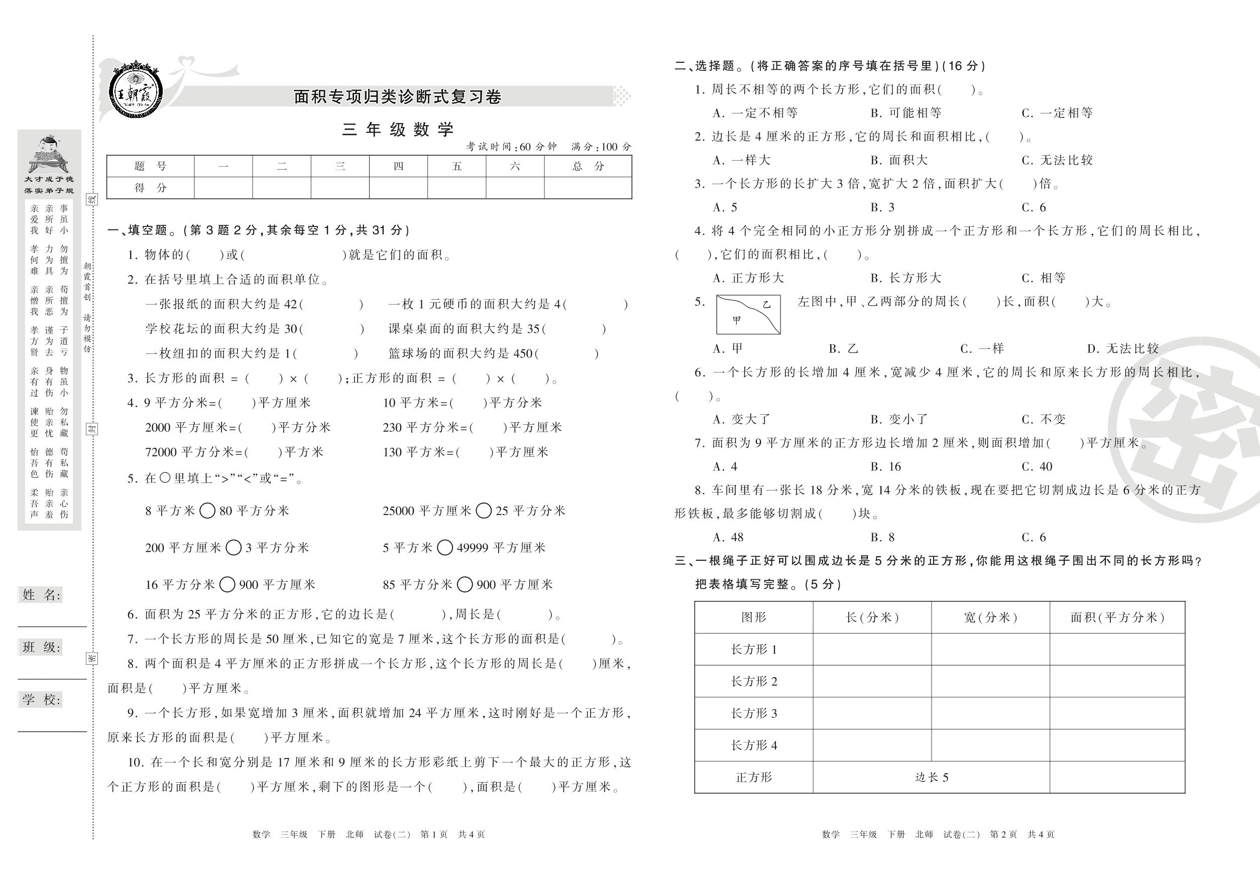 王朝霞期末专项卷三年级下册数学(北师版)_R210804104022【2】