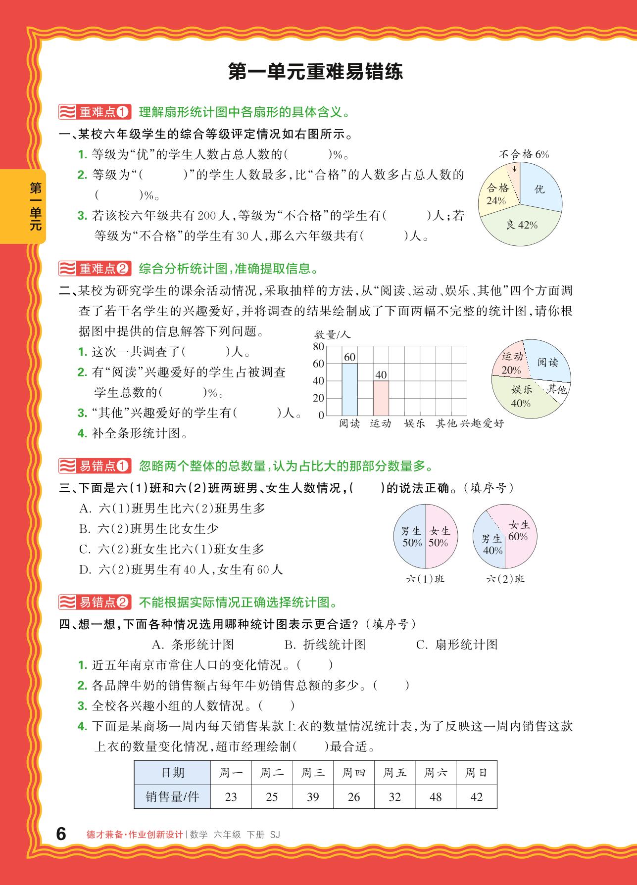 2024春下册六年级数学苏教版 第一单元重难易错练