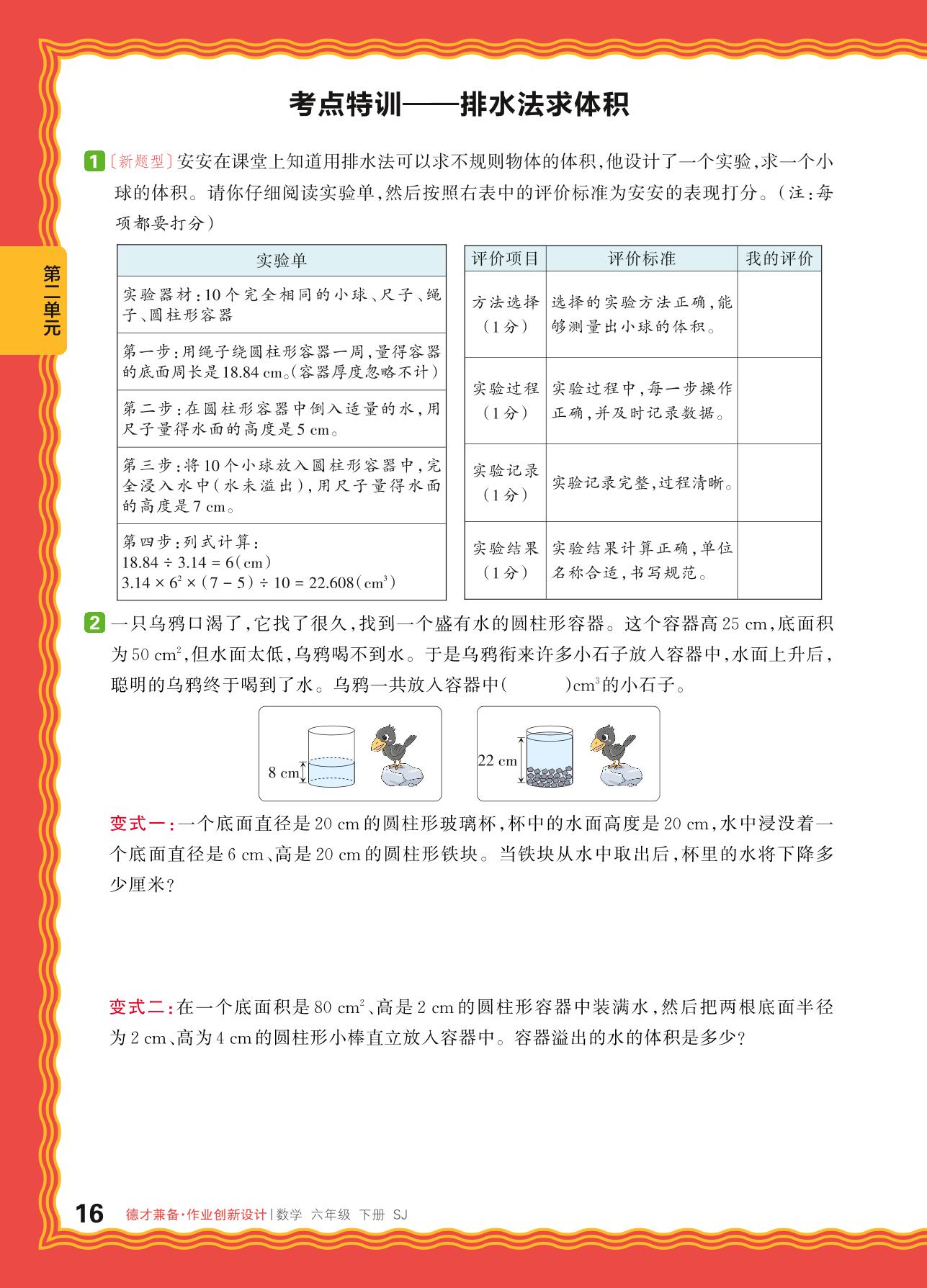 2024春下册六年级数学苏教版 第二单元 圆柱和圆锥——考点特训 排水法求体积