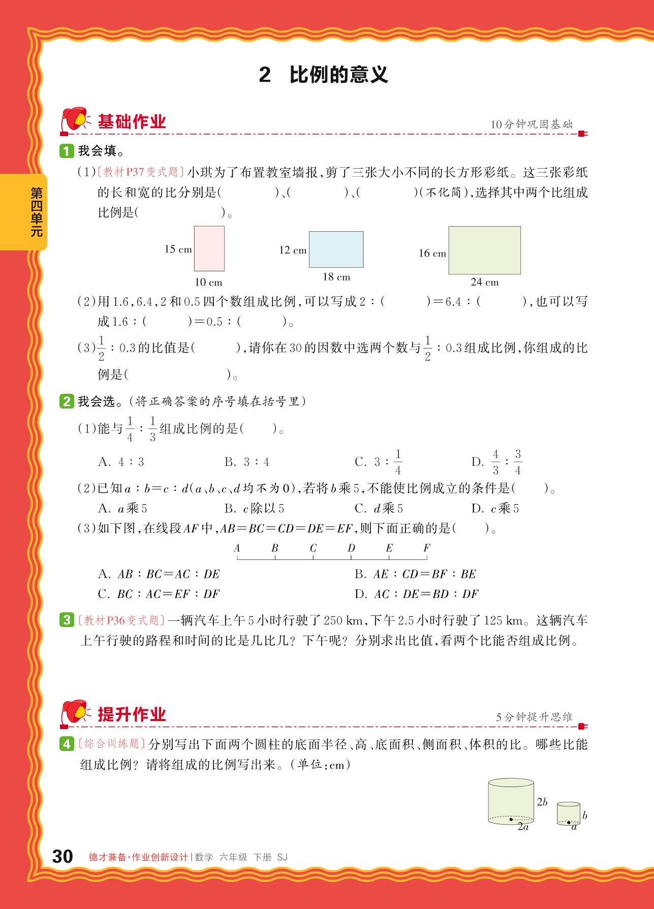 2024春下册六年级数学苏教版 第四单元 比例——2. 比例的意义_R240123164555890