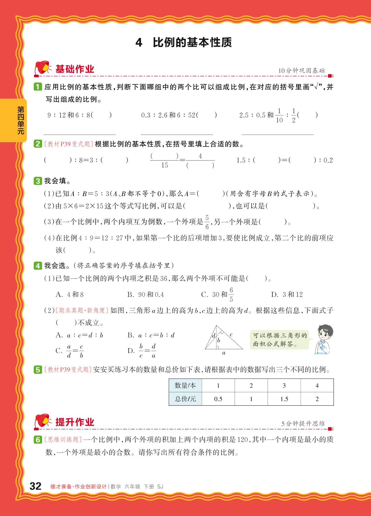 2024春下册六年级数学苏教版 第四单元 比例——4. 比例的基本性质