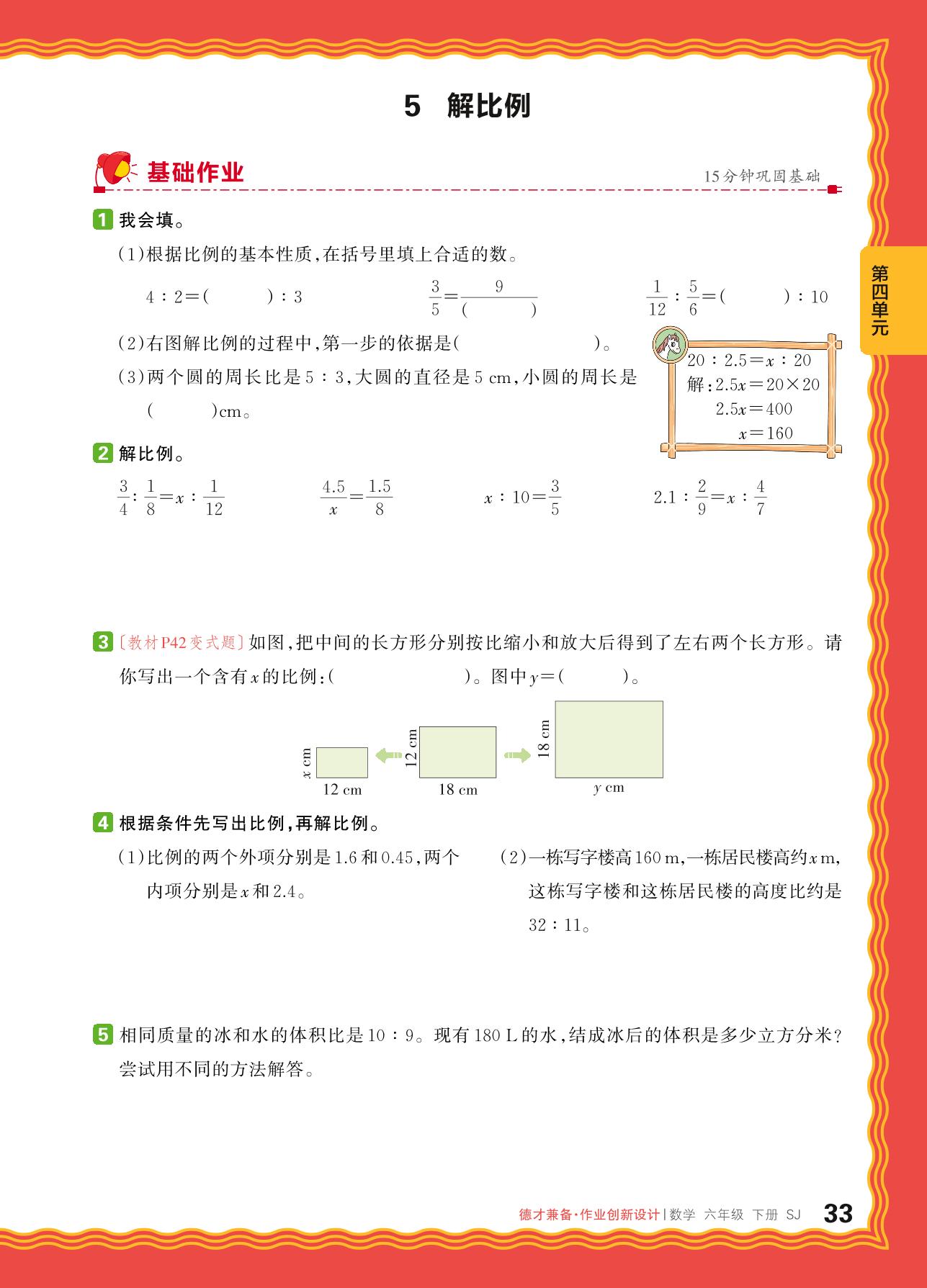 2024春下册六年级数学苏教版 第四单元 比例——5. 解比例