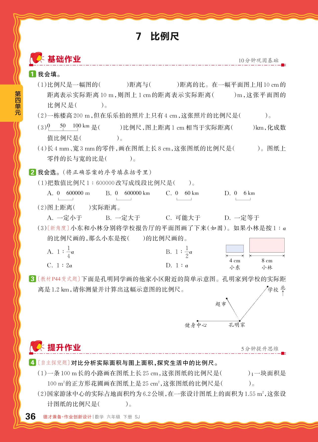 2024春下册六年级数学苏教版 第四单元 比例——7. 比例尺