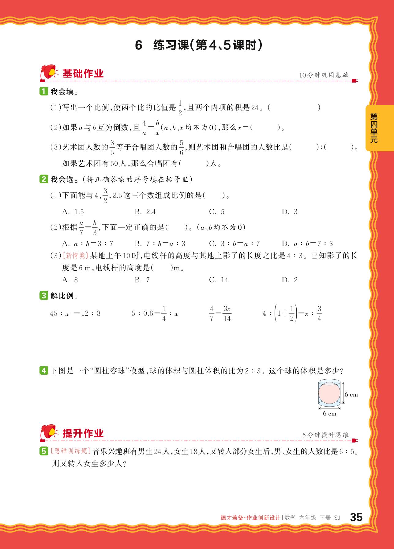 2024春下册六年级数学苏教版 第四单元 比例——比例的基本性质、解比例练习课_R240123164557042